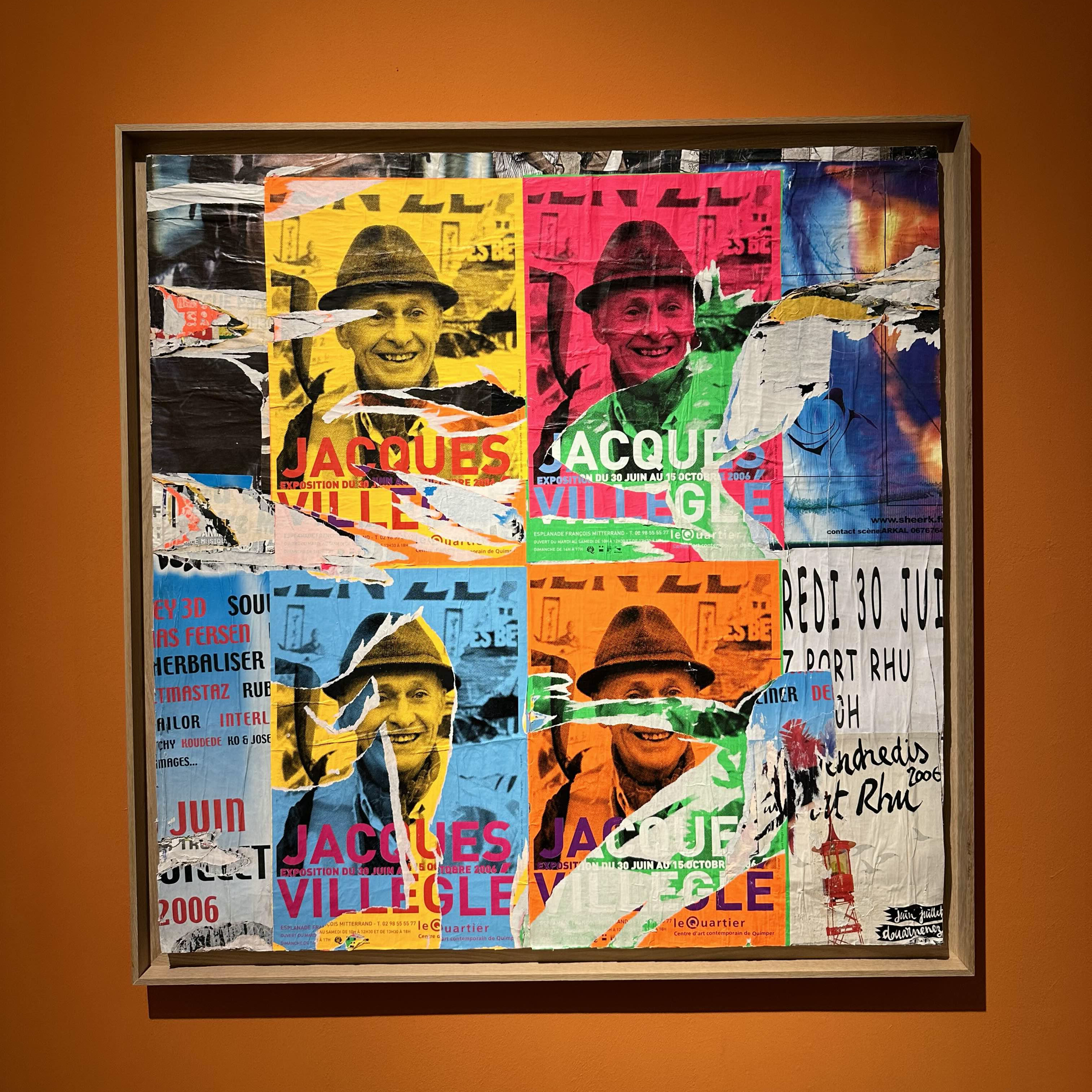 Jacques Villeglé는 1940년대 후반 파리 거리에서 발견한 찢어진 포스터로 만든 혁신적인 믹스드 미디어 콜라주로 가장 잘 알려져 있습니다. Villeglé의 작품은 이러한 인기 있는 공예품의 찢어진 조각을 재구성하며 그 중 일부는 광고가 그려져 있습니다. 그의 작품은 유머, 에로티시즘, 사회정치적 비판을 전달하기 위해 텍스트, 순수한 색상 블록, 상업적 이미지를 모두 리믹스 한 것을 특징으로 합니다. Villeglé는 Nouveau Réalisme 운동에 참여했습니다. 동료 멤버인 Yves Klein, Jean Tinguely와 함께 그는 현실의 측면을 차용하여 아방가르드 예술을 발전시키는 데 전념했습니다. Villeglé는 널리 전시되었습니다. 그의 작품은 유통 시장에서 6자리 가격에 판매되었고 현대 미술관, 테이트, 퐁피두 센터의 컬렉션에 속해 있습니다. (출처 : artsy.net)