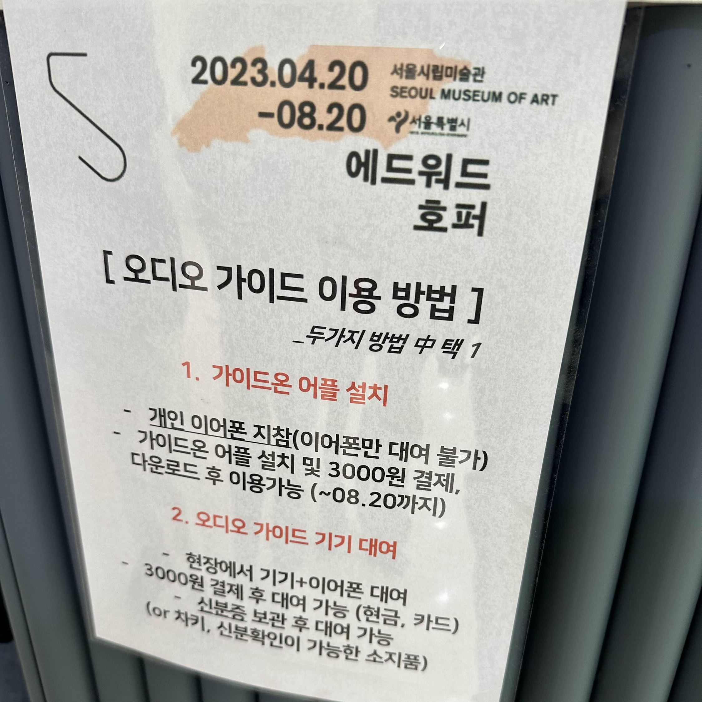 오디오 가이드 기기를 대여 받을 수 있고 앱을 통해서 다운로드 받을 수도 있는데 저는 앱으로 결제했습니다.