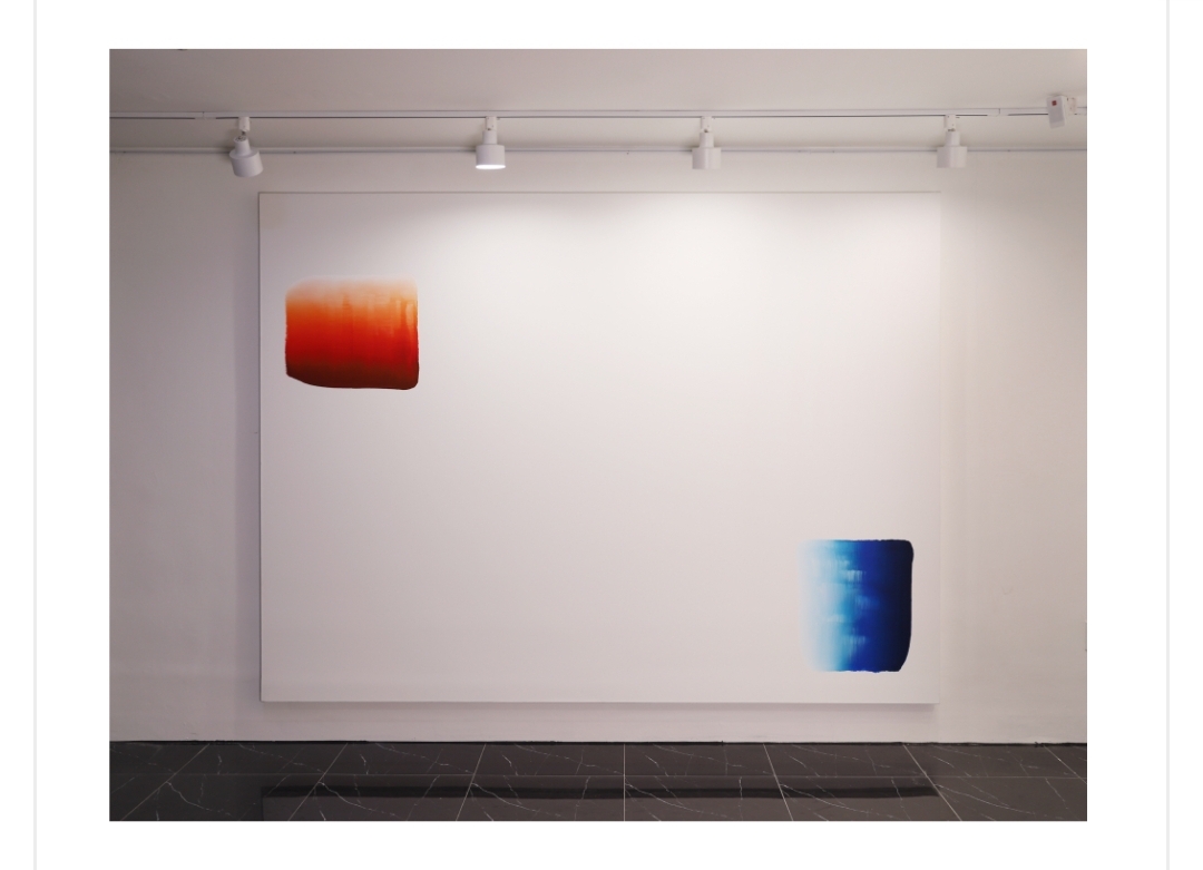 캔버스 위의 서로 다른 방향으로 바라보는 두개의 점이 자연스럽게 균형감을 유지하고 있습니다.