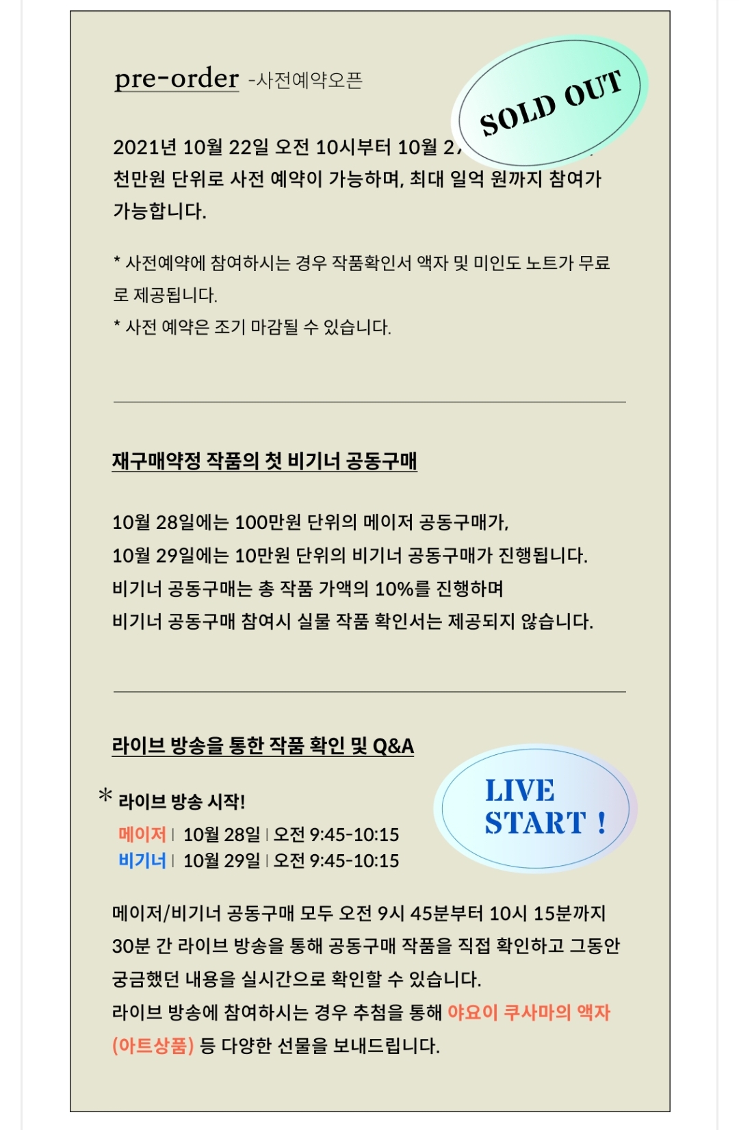 지난주에 작품가액의 50%를 Pre-order로 진행했었으나 최소 1000만원부터 투자가 가능해서 저는 패스 했었습니다.