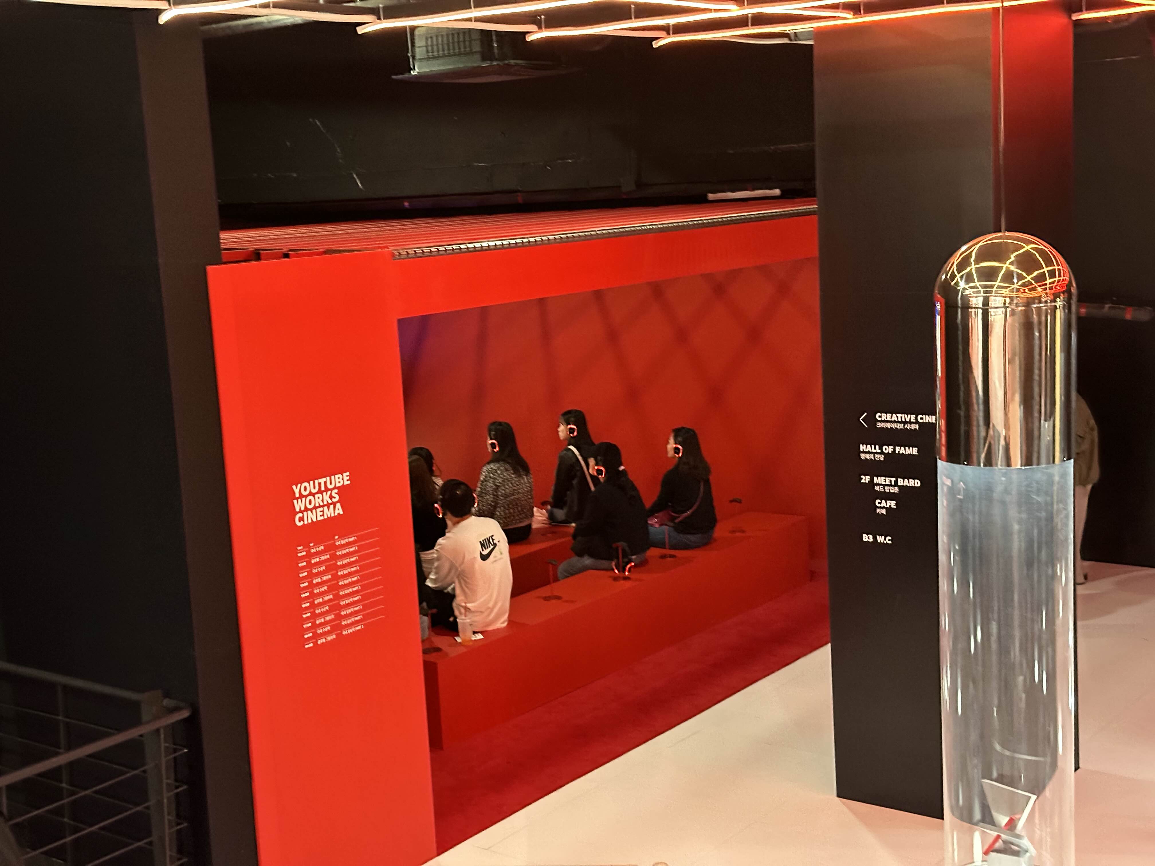 유튜브 웍스 어워즈는 크게 1층/0.5층/2층으로 전시가 진행되었는데 우선 1층에서 실버 버튼과 함께 사진을 찍은 후 0.5층으로 내려갑니다.