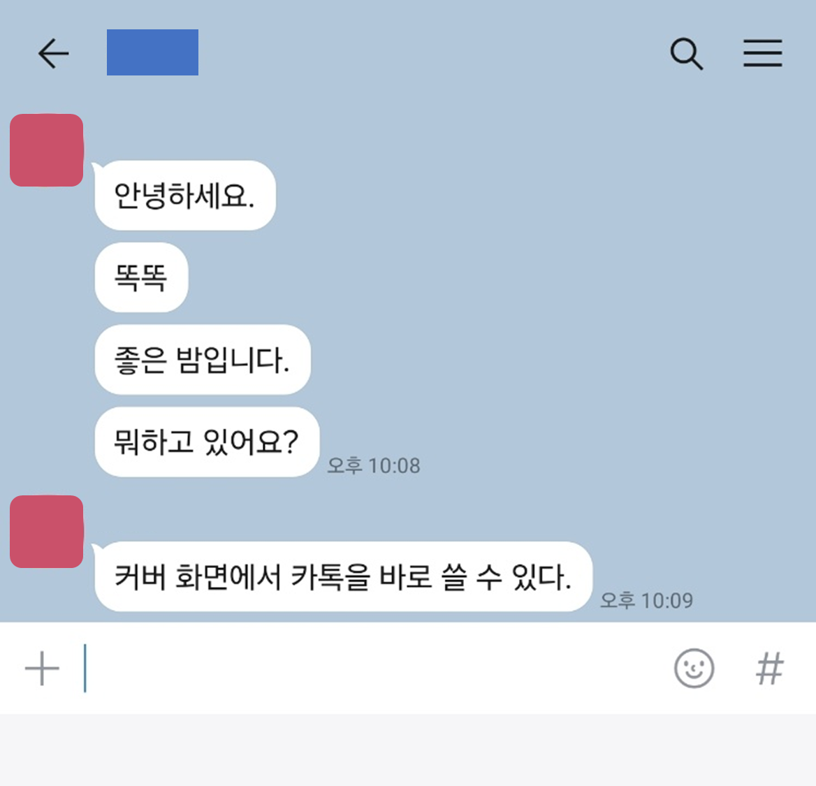3) 커버 화면에서 카카오톡 메시지가 들어오면 다음과 같이 표시가 됩니다.