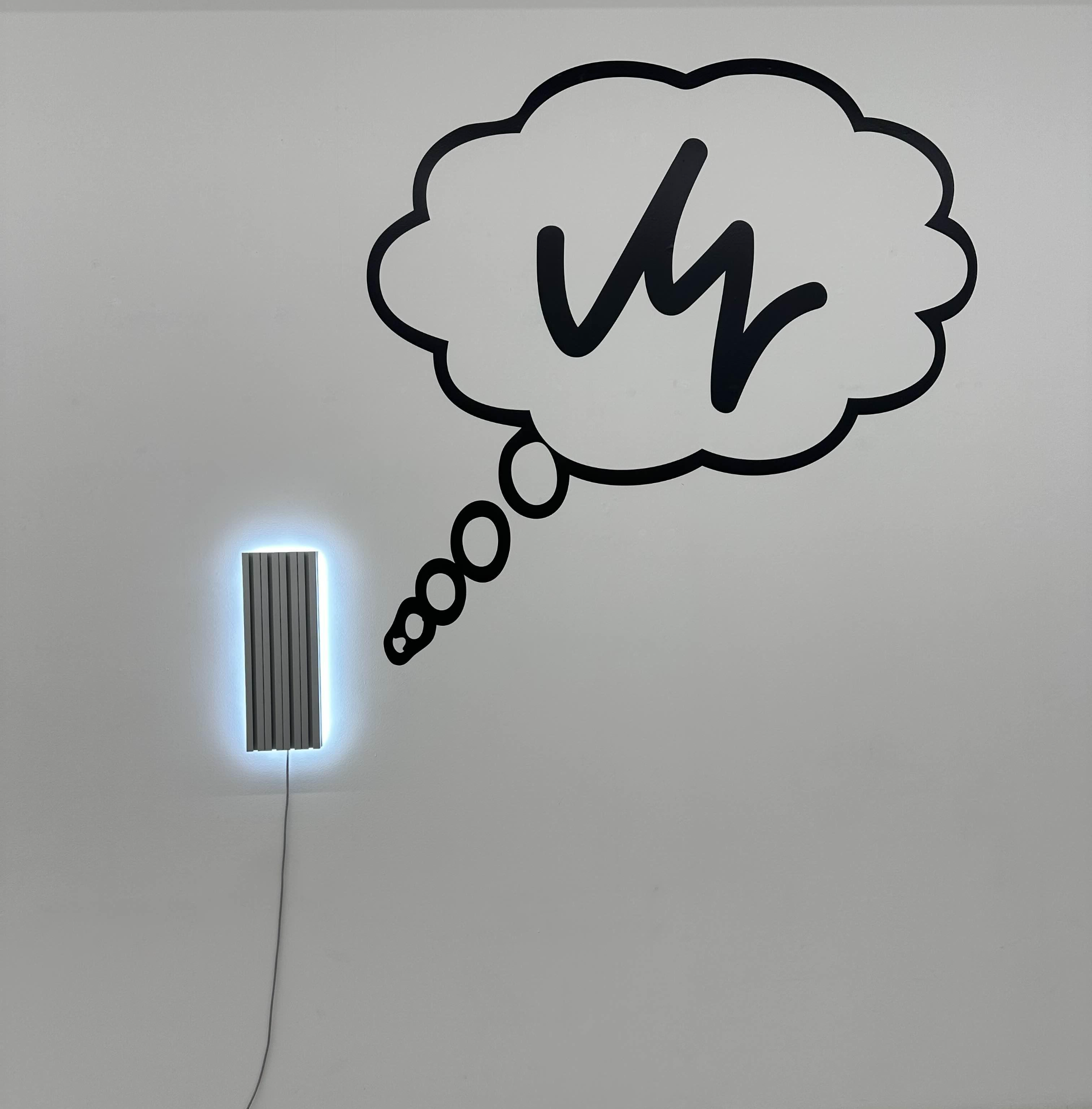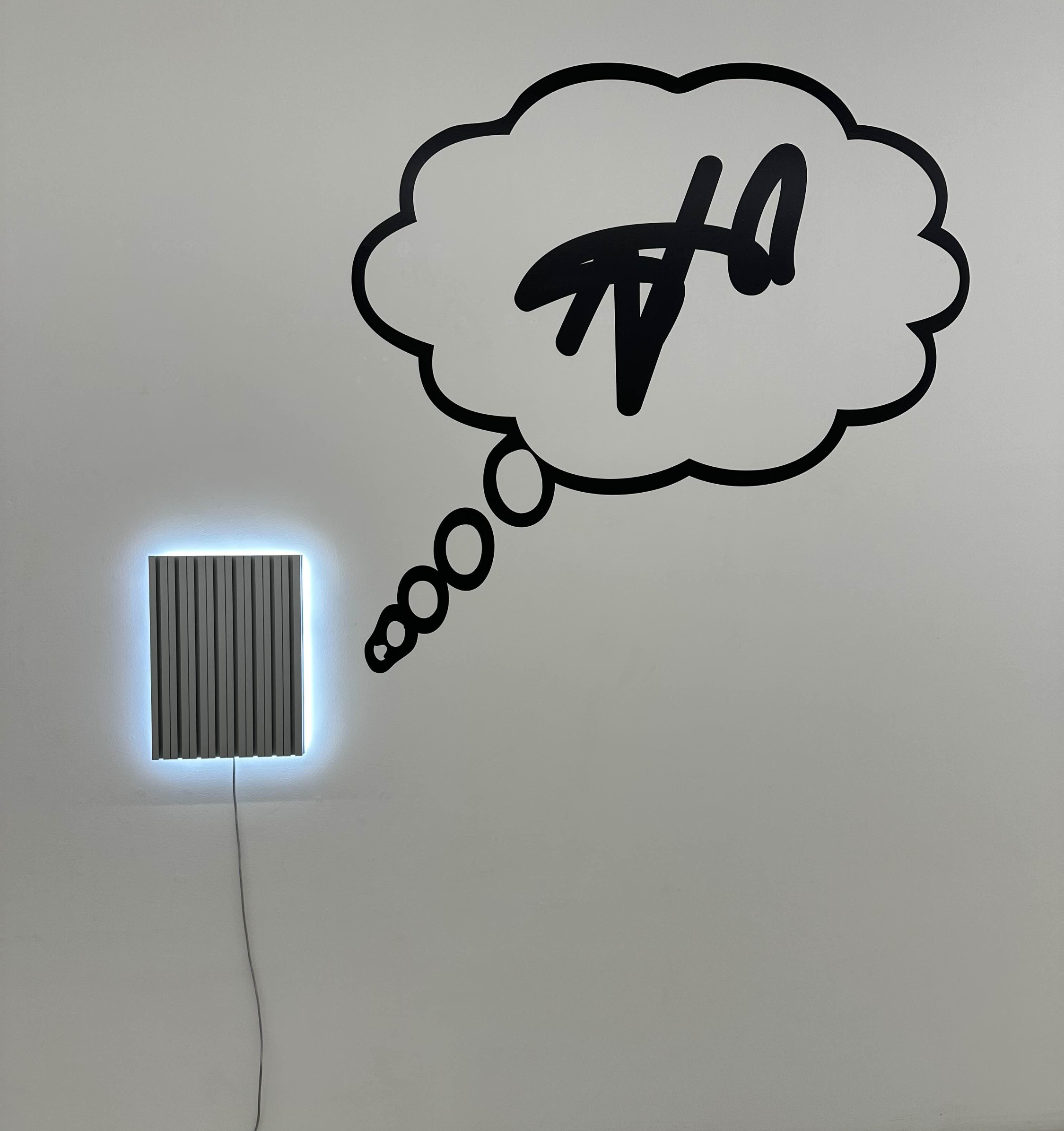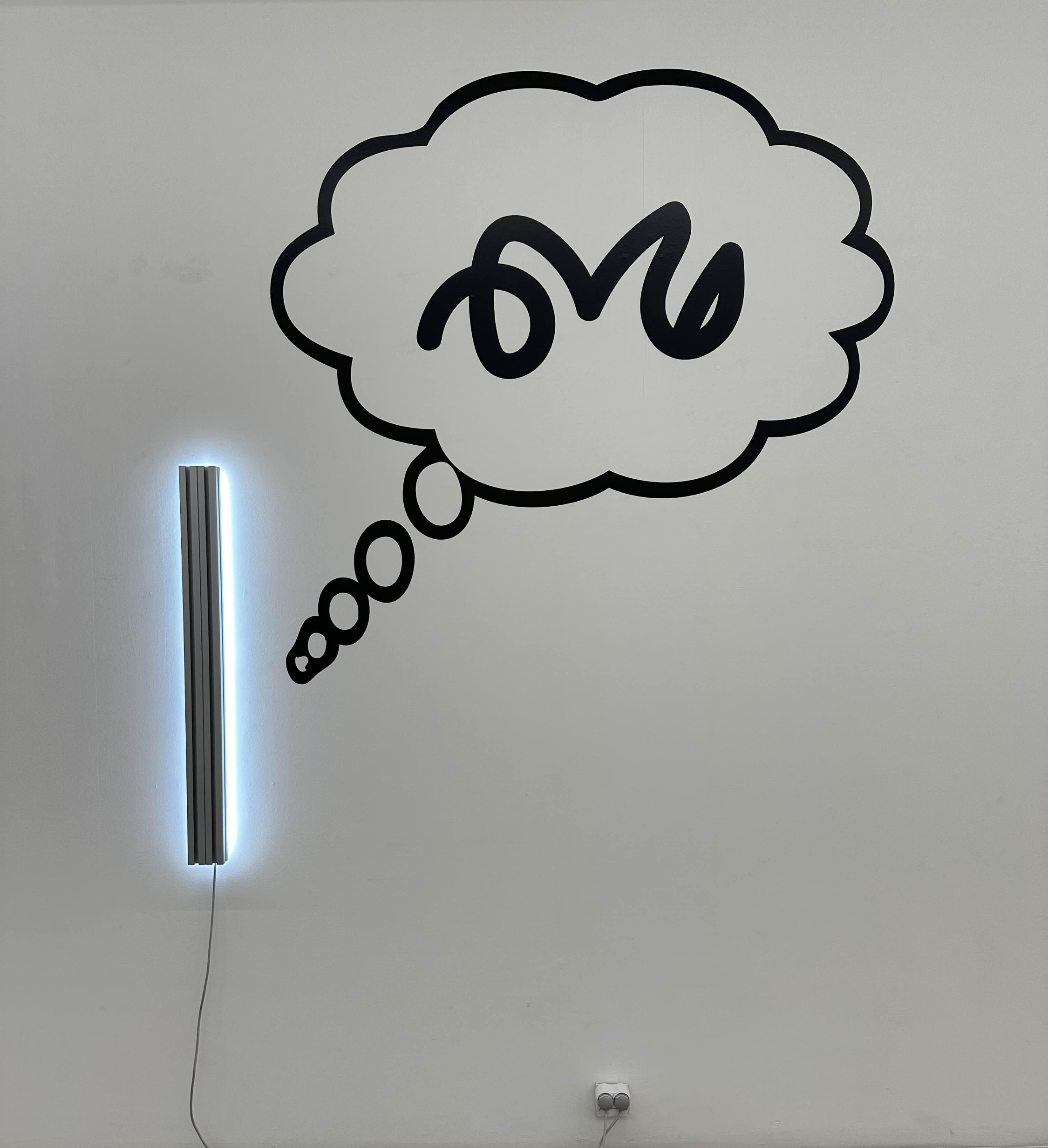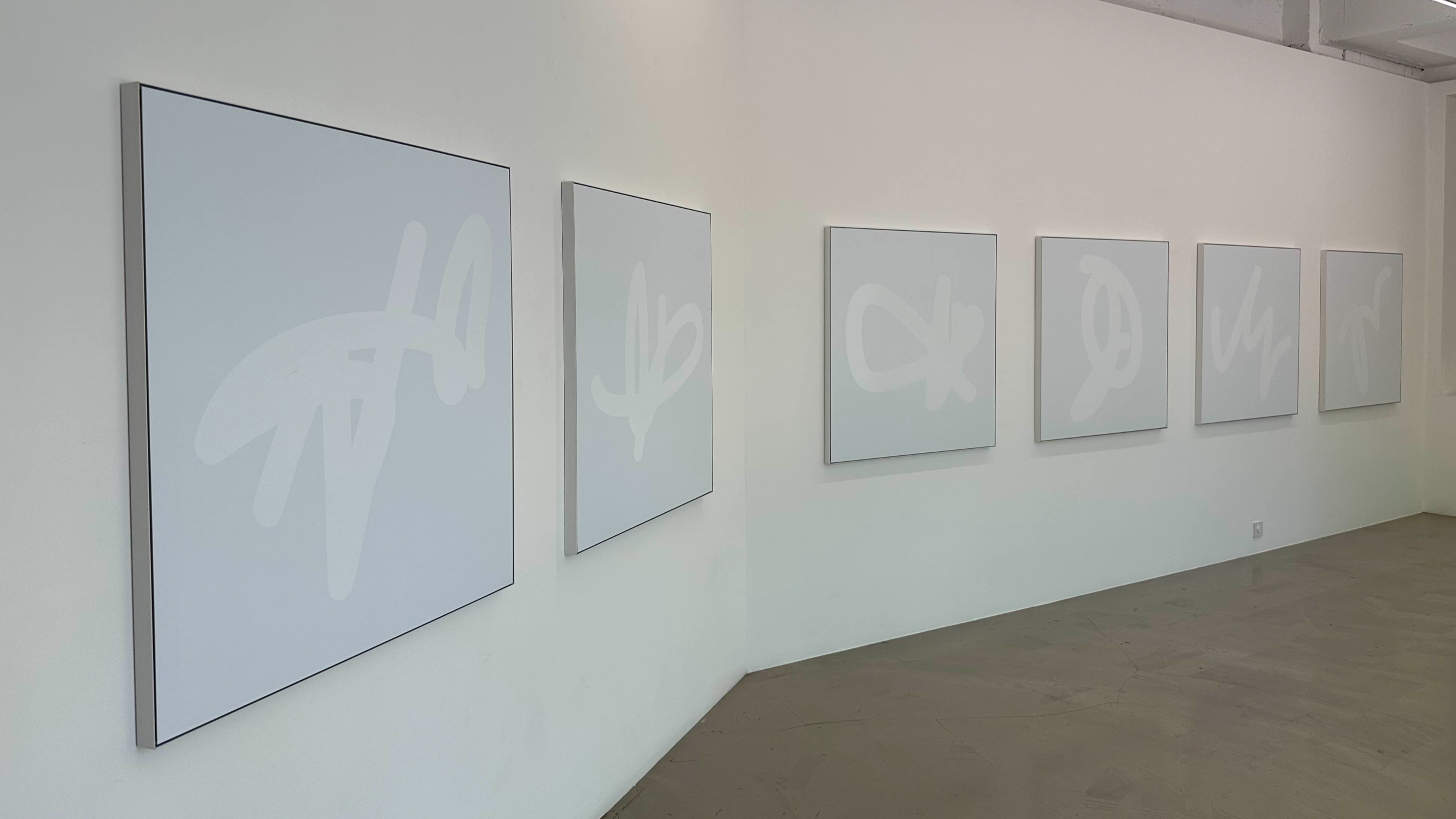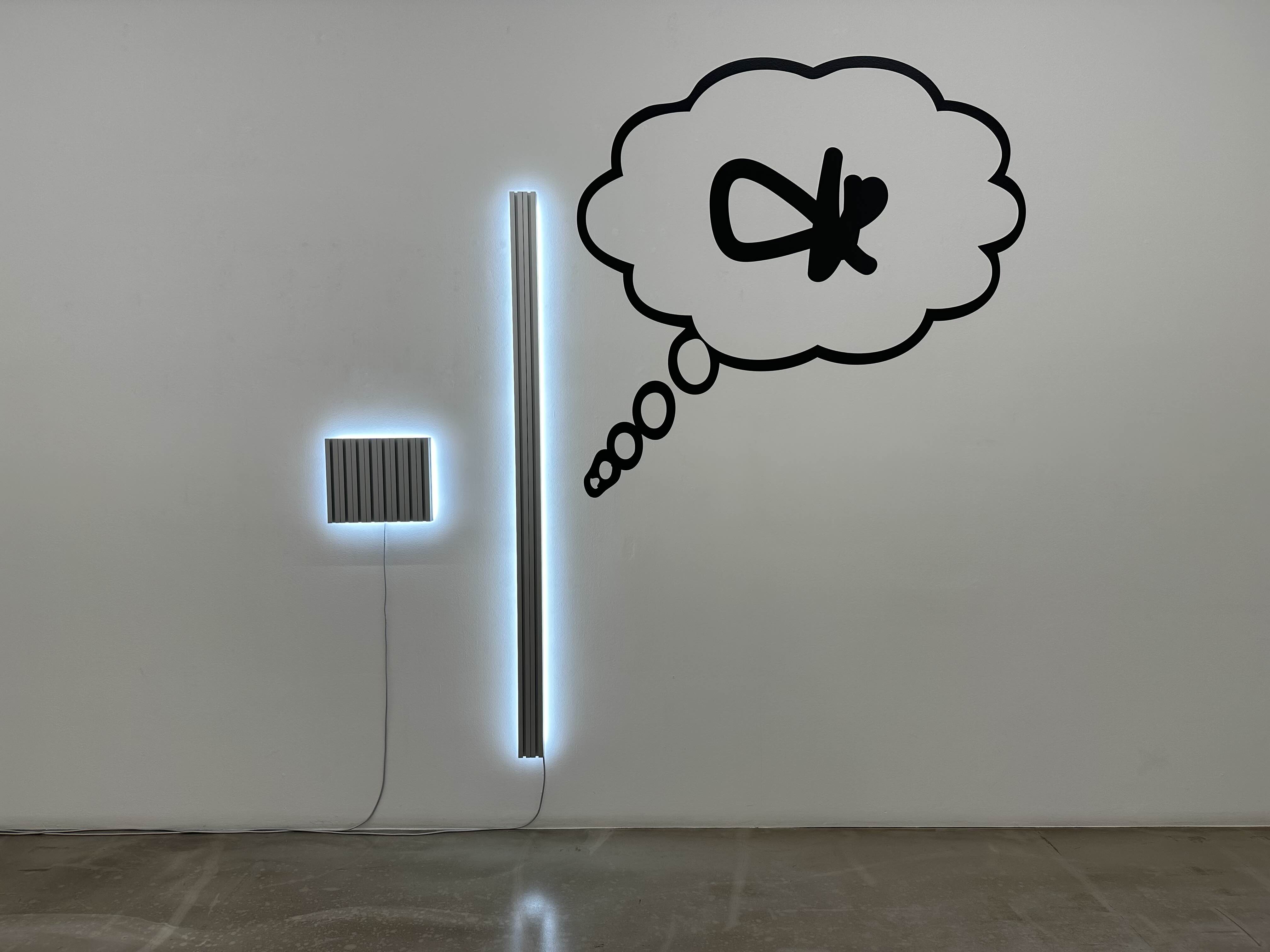 두 곳의 전시장에는 일련의 라이팅 부조 작품이 수수께끼 같은 그래픽 기호들과 병행하여 설치되어 있다고 하는데요.