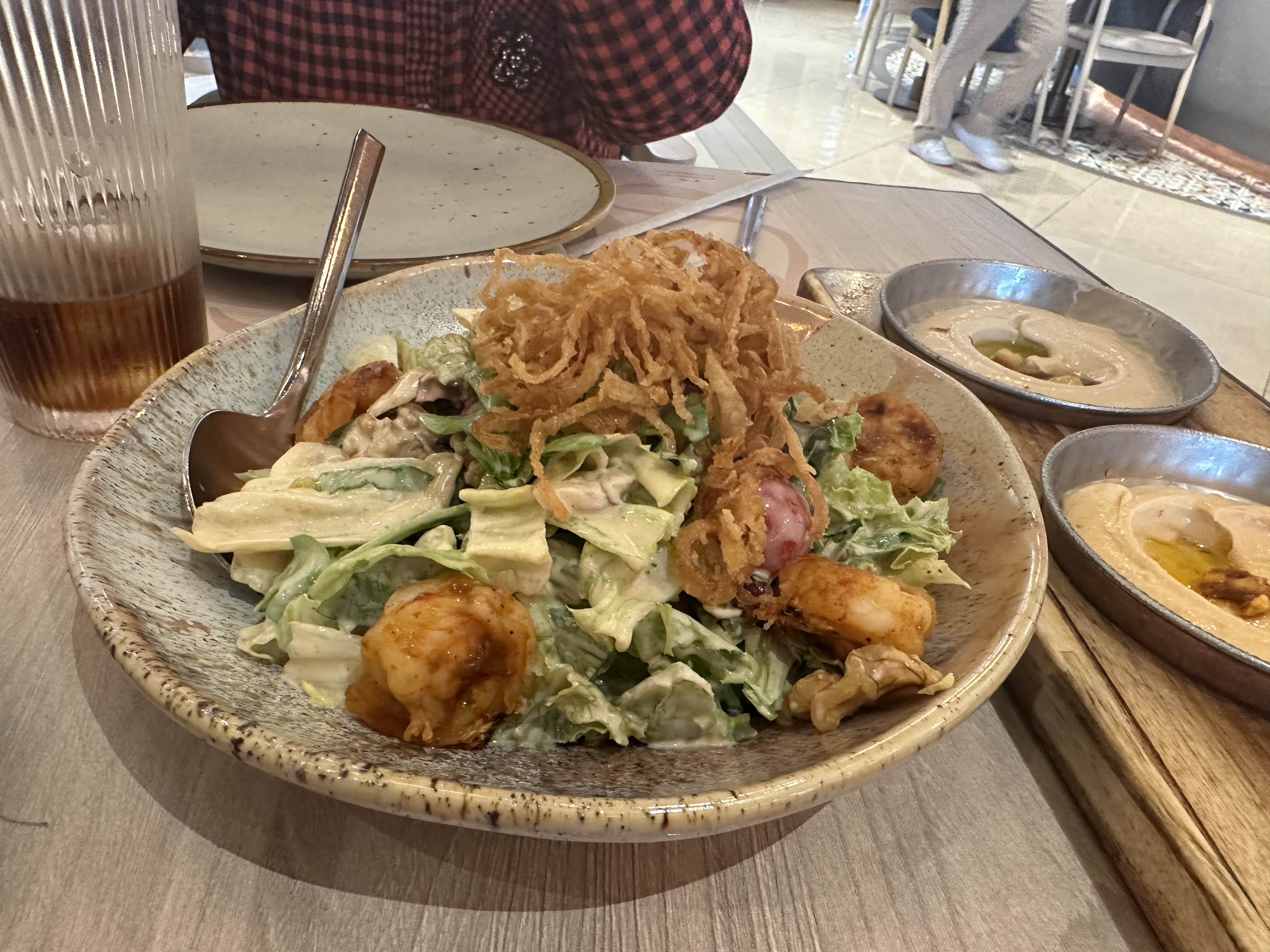 비주얼을 보고 시켰던 Awani Special Beef Skewer는 그러저럭이었지만 쉬림프 샐러드와 후무스 요리는 너무 맛있었습니다.