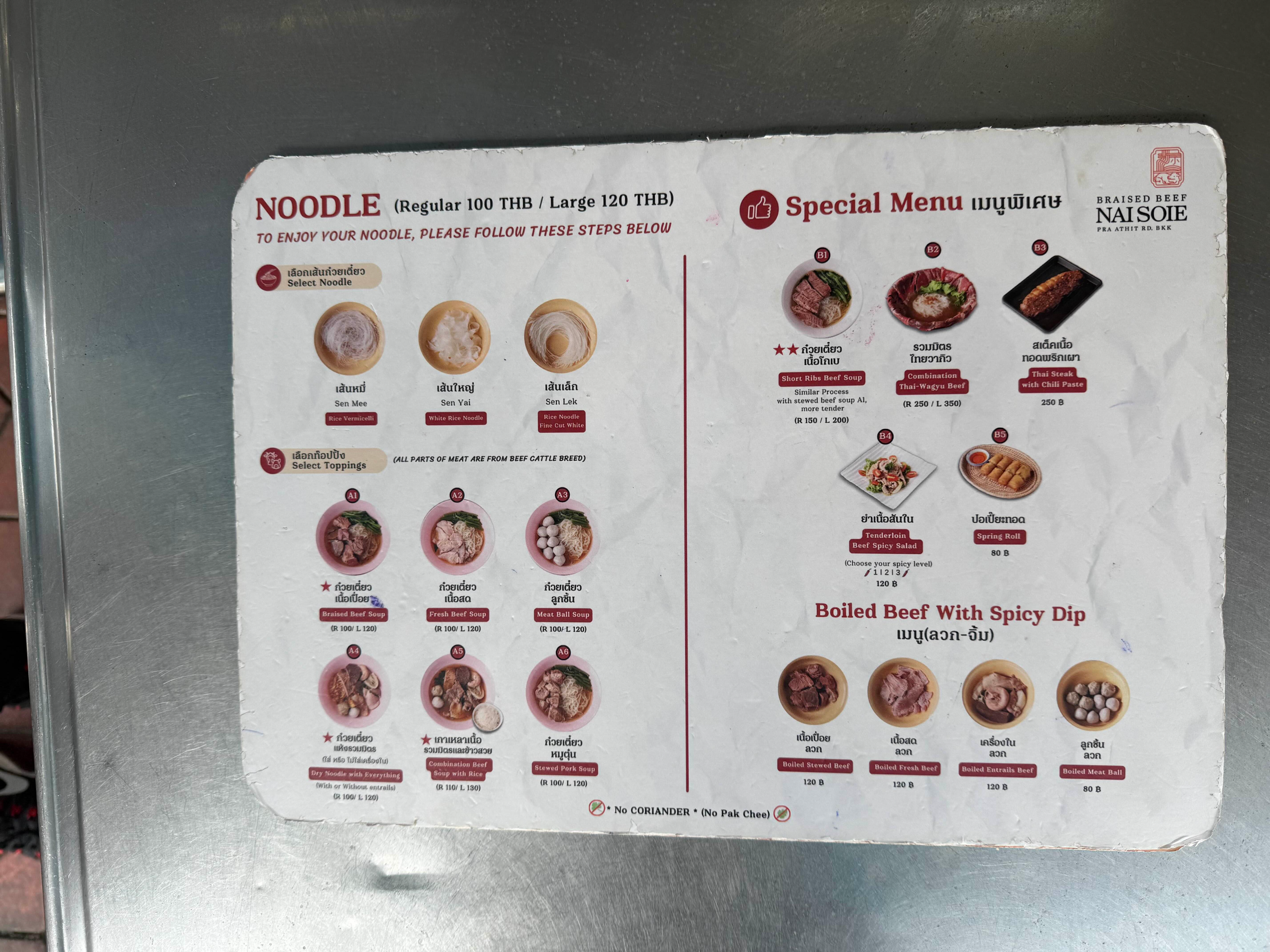 대표 메뉴: Sour & Spicy Pork Spine Soup(랭쌥/태국의 감자탕 같은 느낌이나 국물이 시큼), Stir Fried Kale with Crispy Pork on Rice