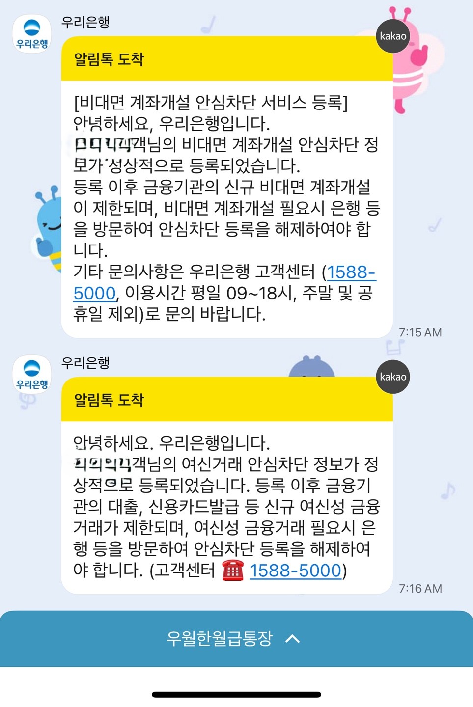 은행에 가야 이 차단 서비스를 해제할 수 있다고 하니 참고하세요.