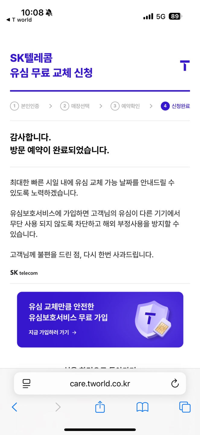 4월 28일(월) 오전 유심 무료 교체 신청을 했습니다.
