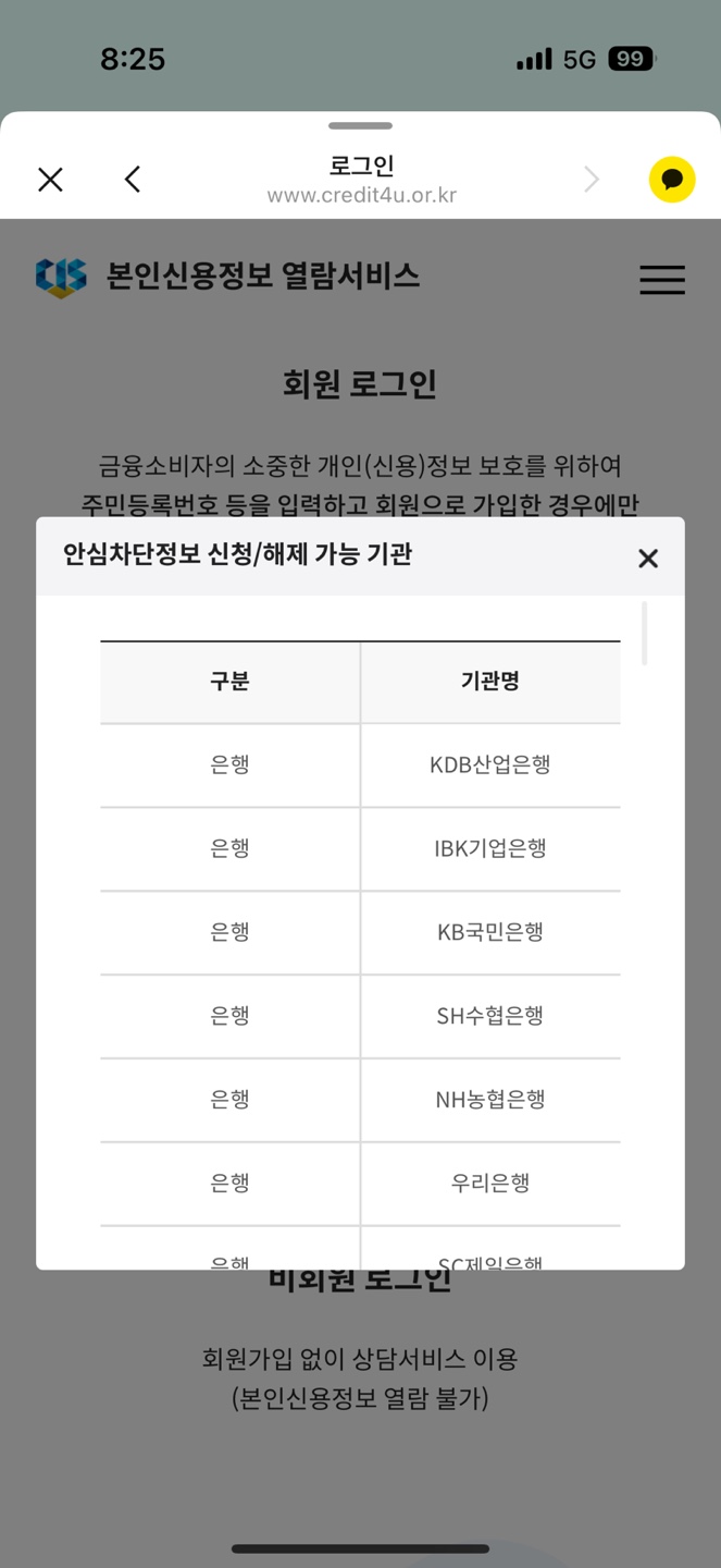 제대로 서비스가 신청되었는지 www.credit4u.or.kr 에서 확인이 가능하다고 합니다. (회원 가입 필수)