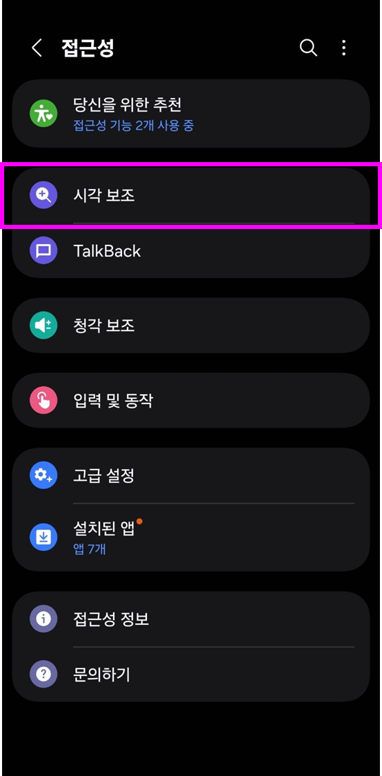 이는 접근성 설정과 다크모드가 함께 적용되어 발생하는 현상입니다.