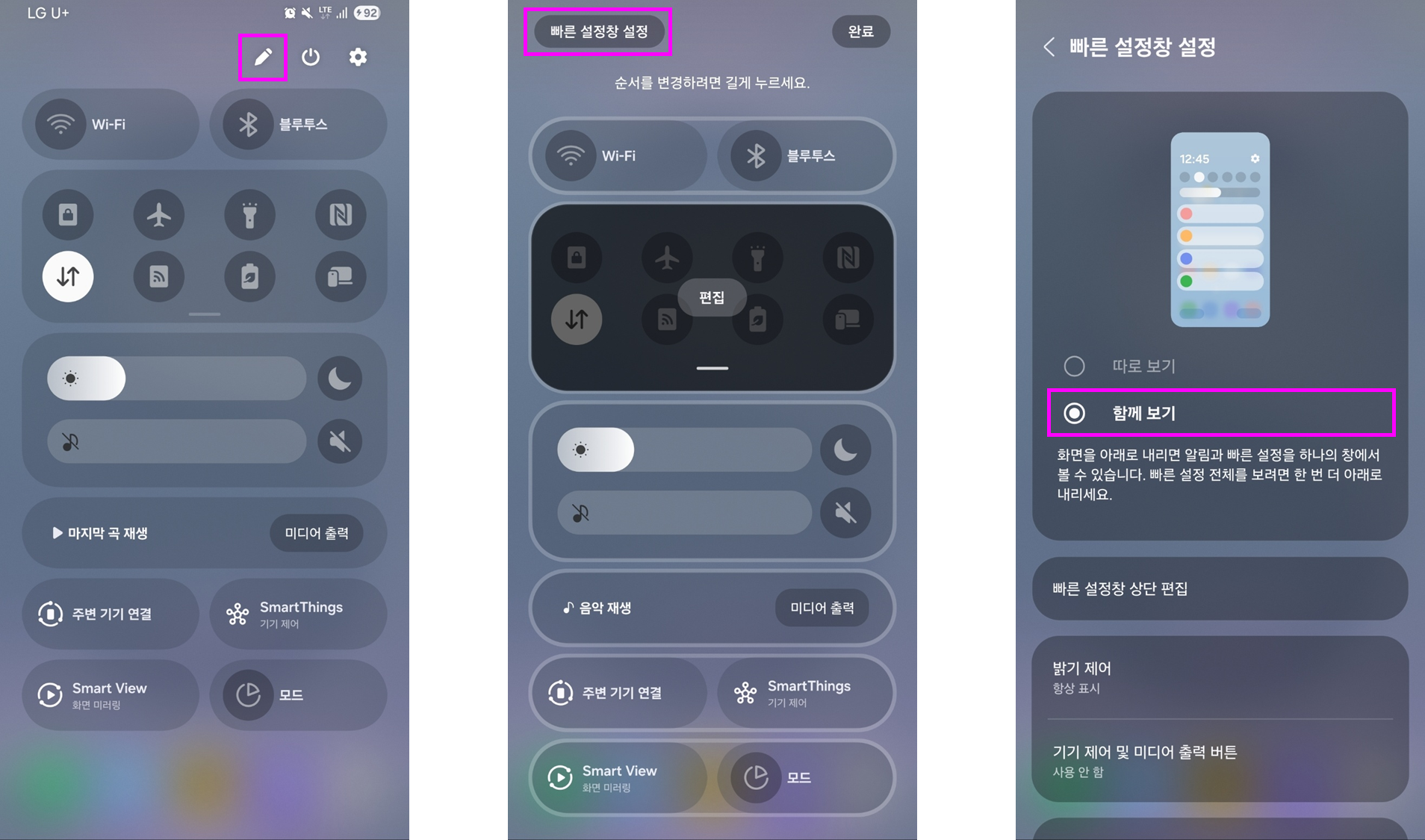 이전 버전처럼 알림창과 빠른 설정창 함께 보기