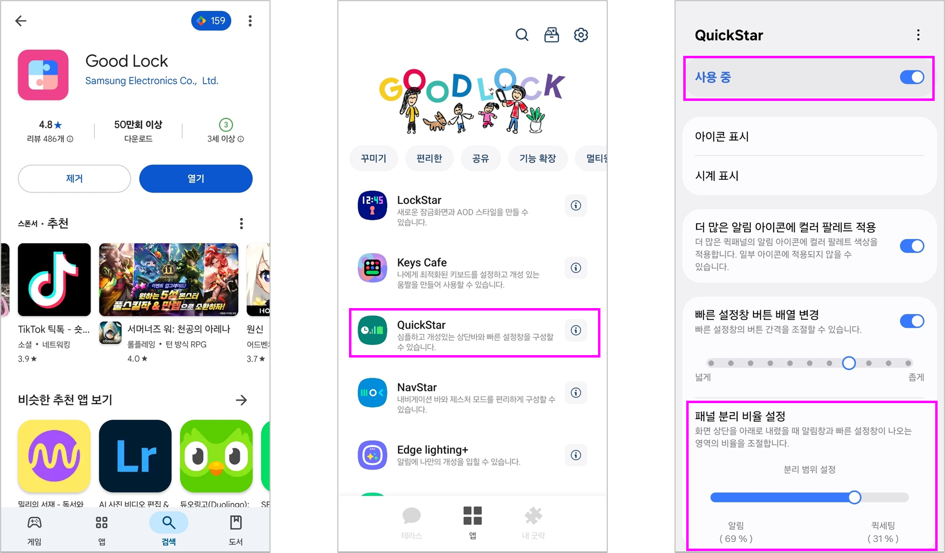 ① 갤럭시 스토어에서 굿락(Good Lock)을 설치합니다