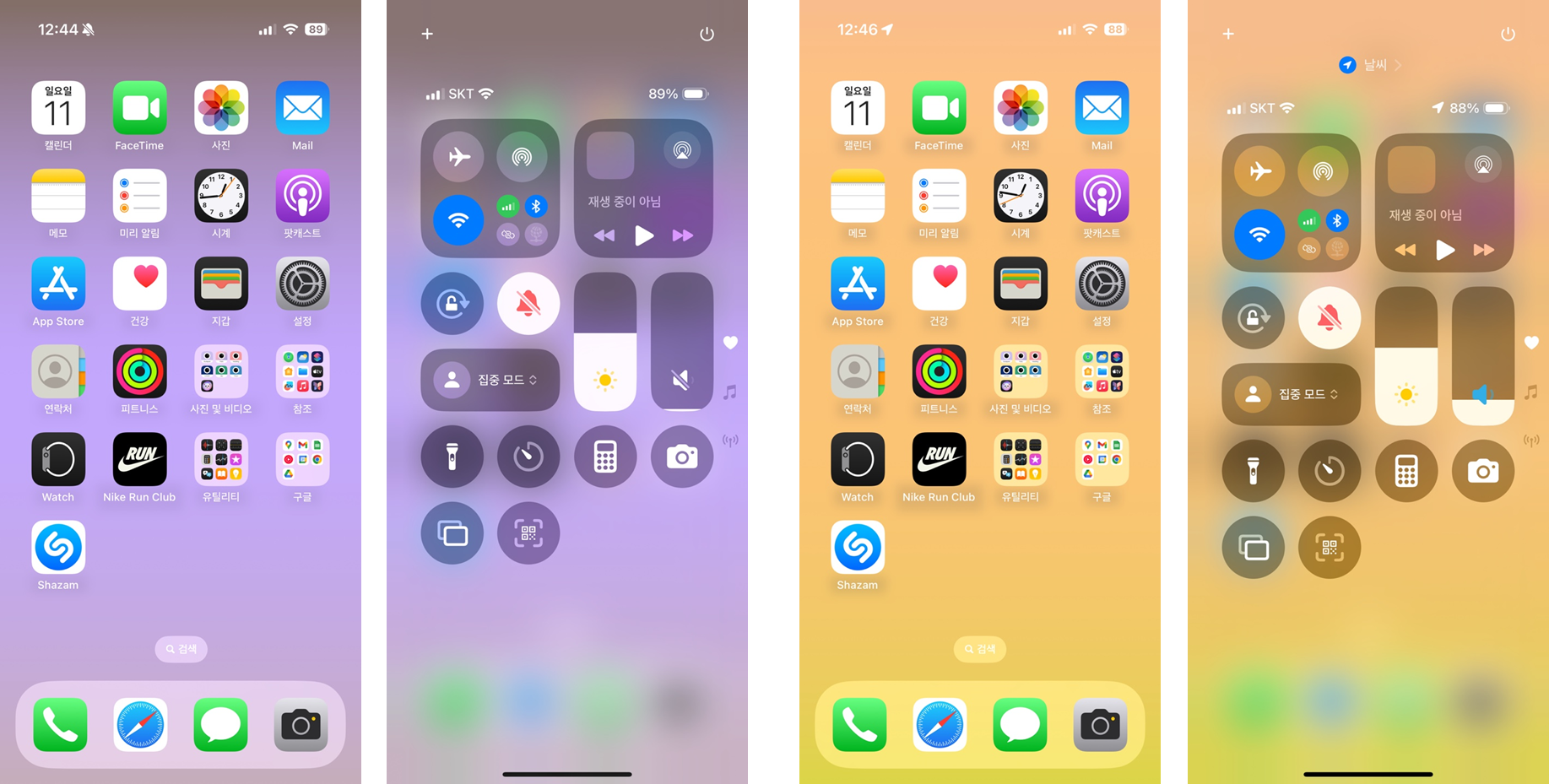 배경화면에 따라 제어 센터의 색상이 자동으로 조화를 이루는 '동적 색상 시스템'으로 배경화면을 바꿀 때마다 제어 센터도 자연스럽게 어울리는 색상으로 변화하게 됩니다.