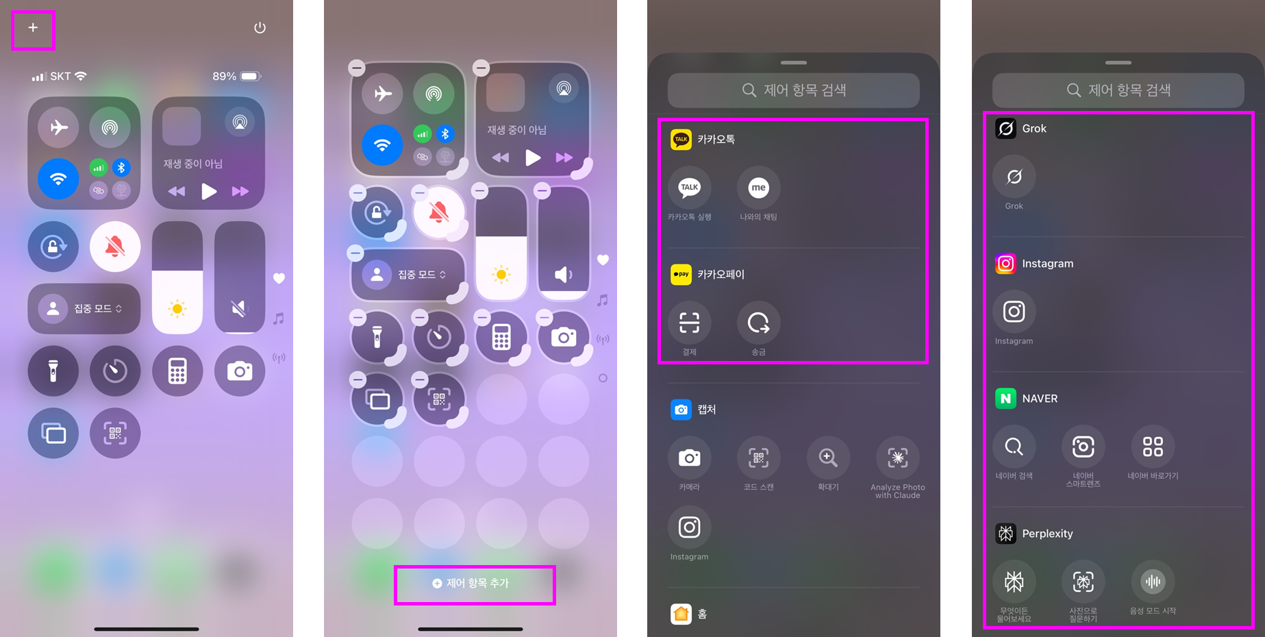 이제 카카오, 네이버, 등 다양한 앱의 컨트롤을 제어 센터에서 바로 사용할 수 있어요!