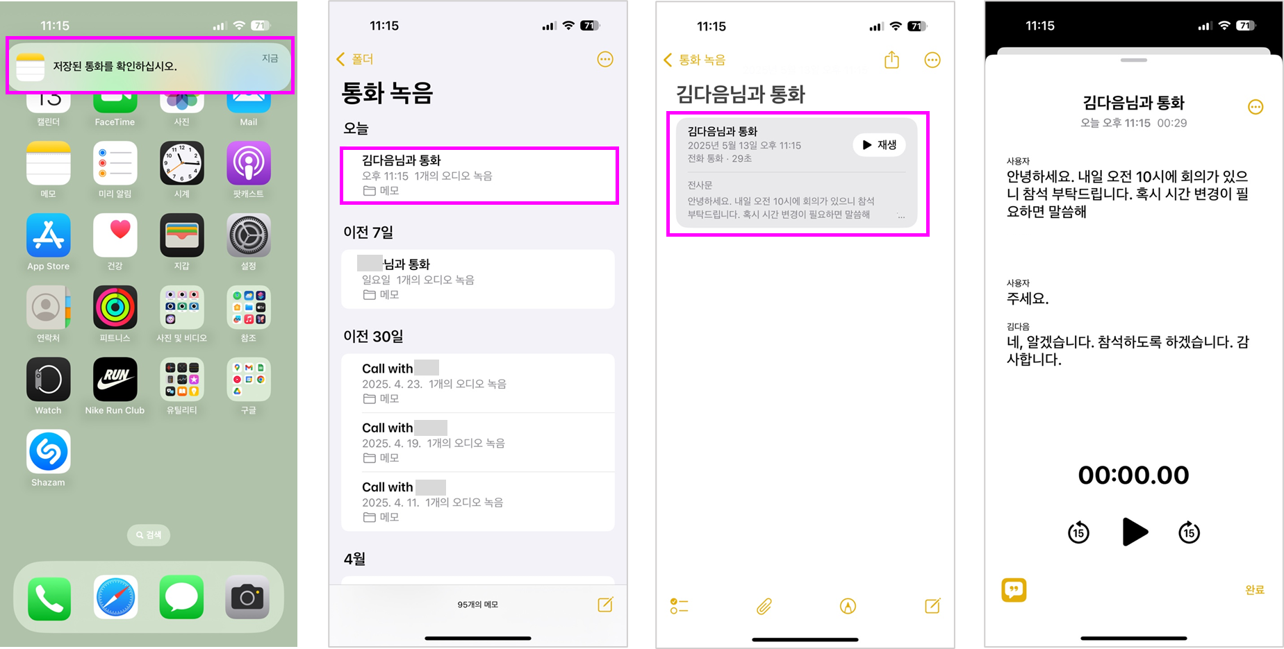 메모 앱 '통화 녹음' 폴더에서 바로 확인 가능