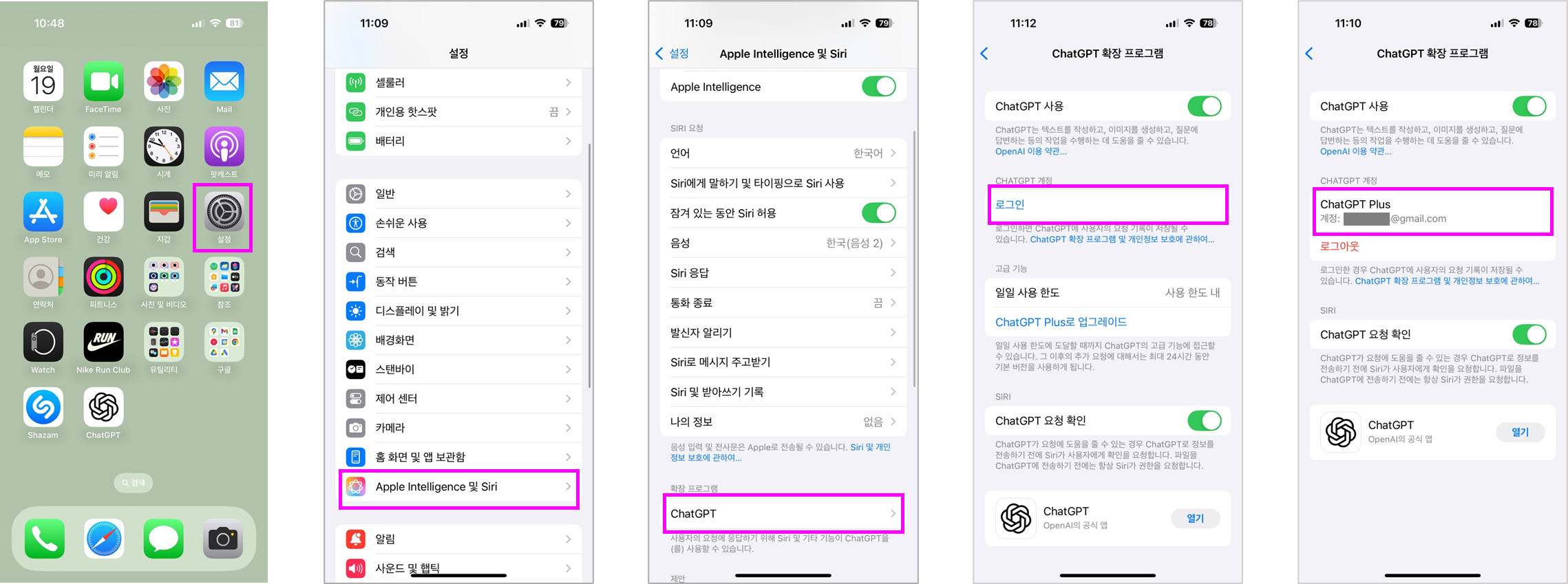 ① 설정 → Apple Intelligence → 확장 프로그램 > ChatGPT 메뉴로 들어갑니다.
