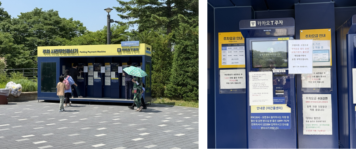 - 사전 및 출구 정산시: 4,000원(기본 2시간) / 1,500원(초과요금 30분당) / 6,000원 (1일 최대)