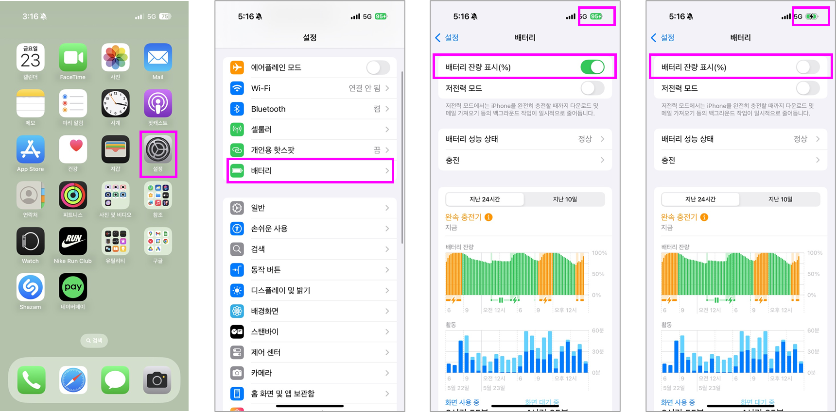 2. 아이폰(iPhone) 배터리 잔량 표시 설정법 (iPhone 16 / iOS 18.5 기준)