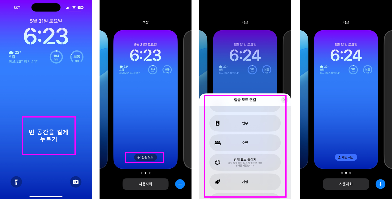 방법1. 잠금화면에서 집중 모드별 배경화면 연동하기
