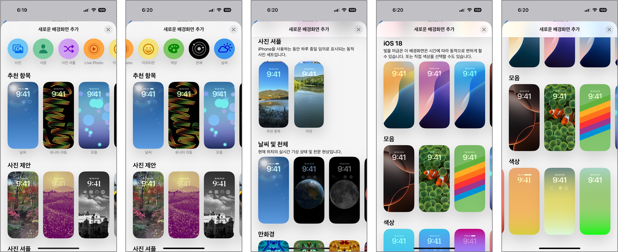 또, 화면을 아래로 내려 실제 어떤 이미지가 표시되는지 살펴보면서 배경화면 타입을 선택할 수 있습니다.