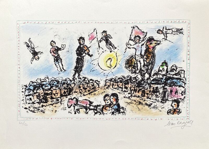 이 작품은 마르크 샤갈이 세상을 떠나기 3년전 1982년에 제작된 판화 작품으로 샤갈 특유의 상상력을 자극하는 표현들을 보여주고 있습니다.