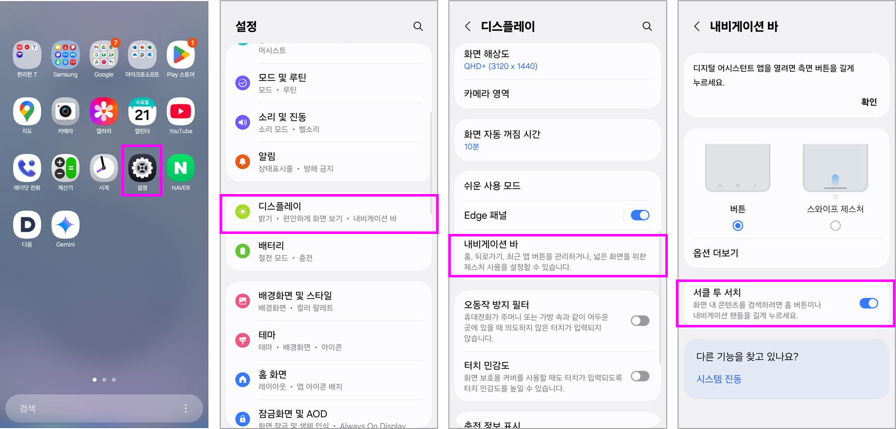 ③ '서클 투 서치' 옵션을 활성화합니다.