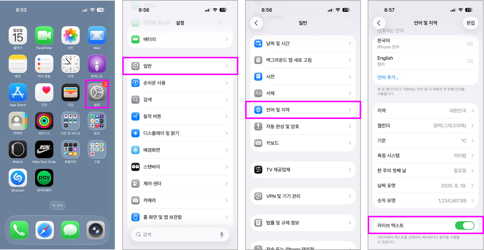 - 라이브 텍스트 활성화