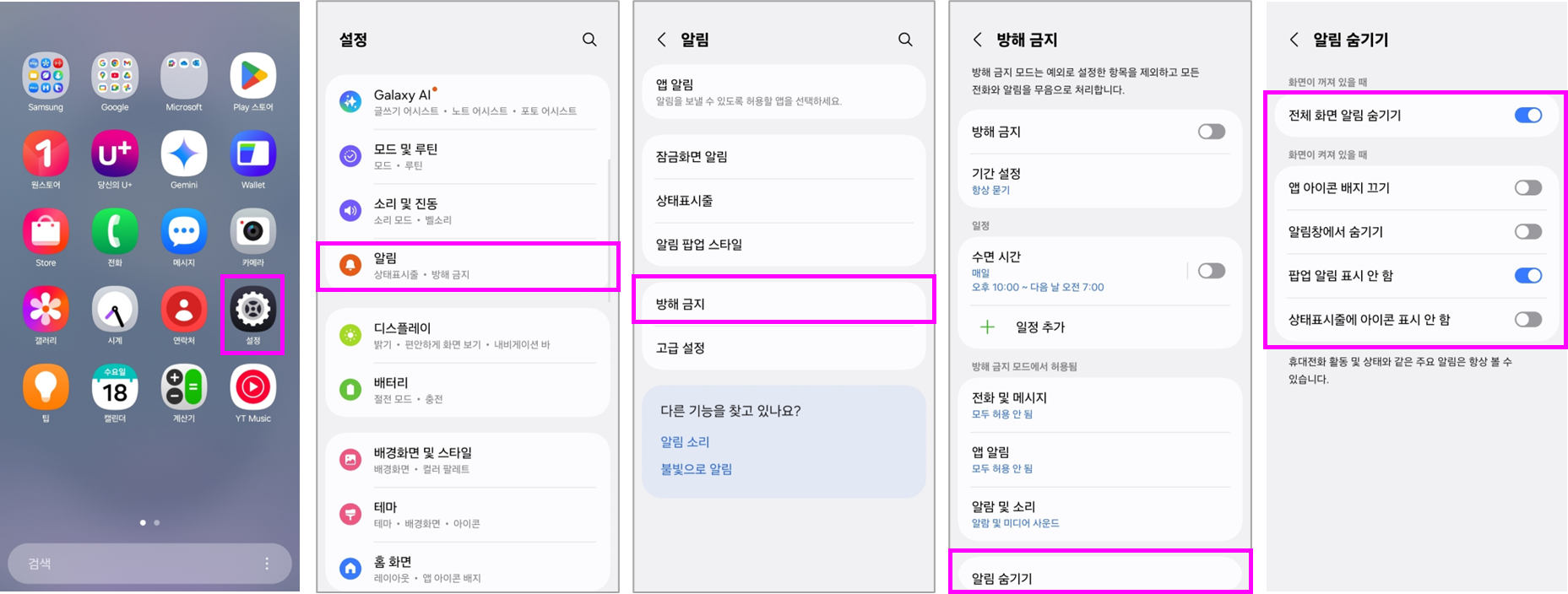 - 앱별로 알림 허용과 차단을 세밀하게 설정하여 꼭 필요한 앱만 알림을 받을 수 있습니다.