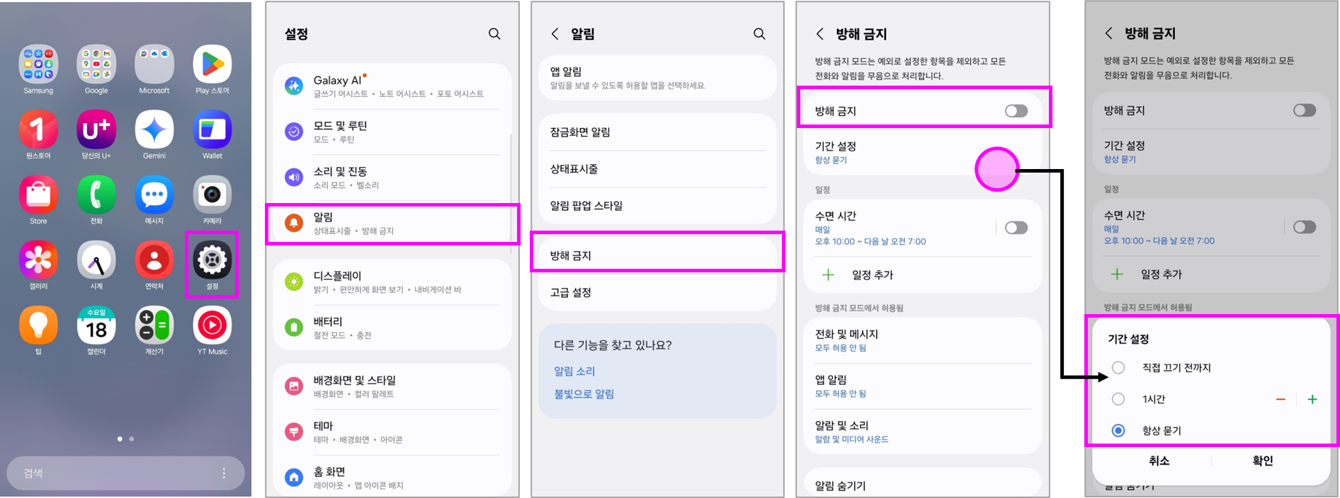 방해금지모드 어떻게 사용할까요?