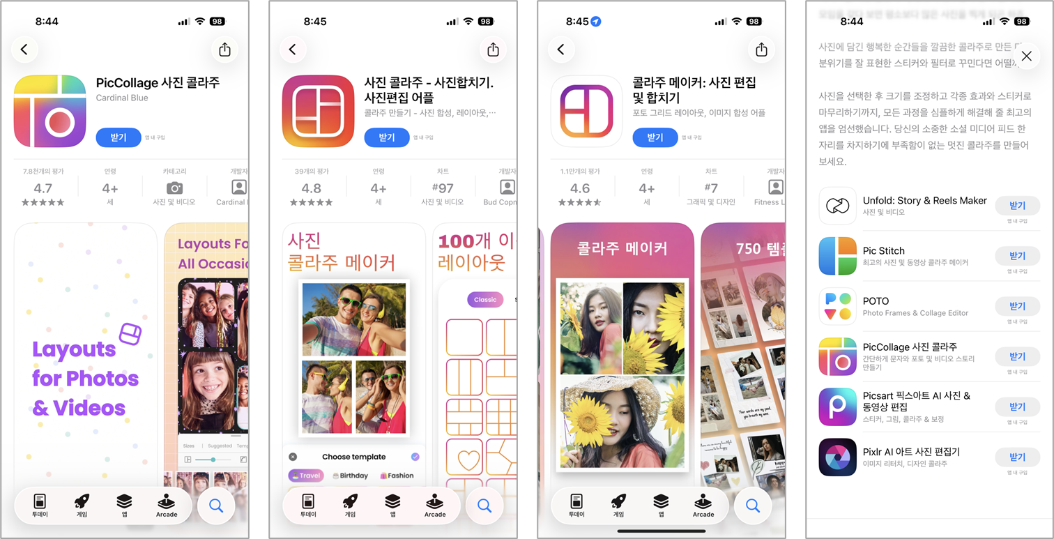 App Store에서 '사진 합치기', '포토 콜라주', 'PicMerger' 등 인기 앱을 설치합니다.