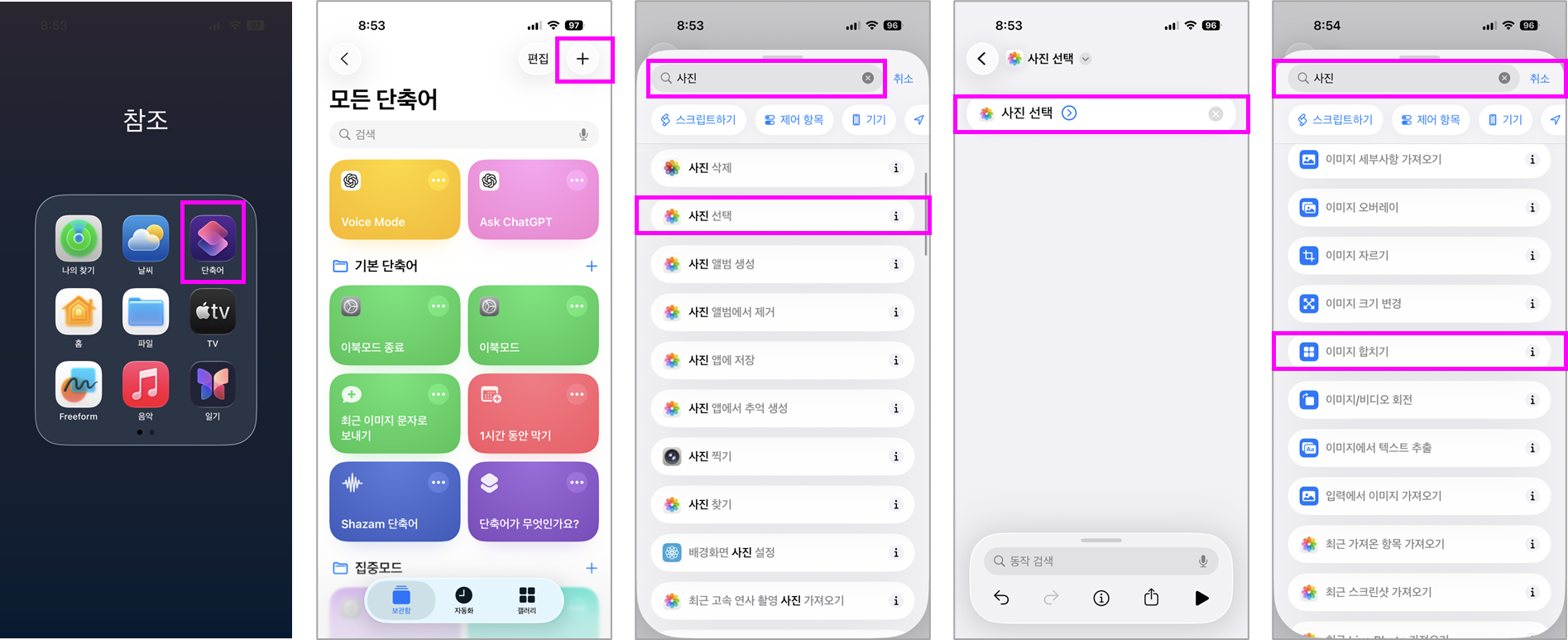A. App Store에서 '단축어' 앱을 최신 버전으로 업데이트하세요. - Q. 합친 이미지는 어디에 저장되나요?