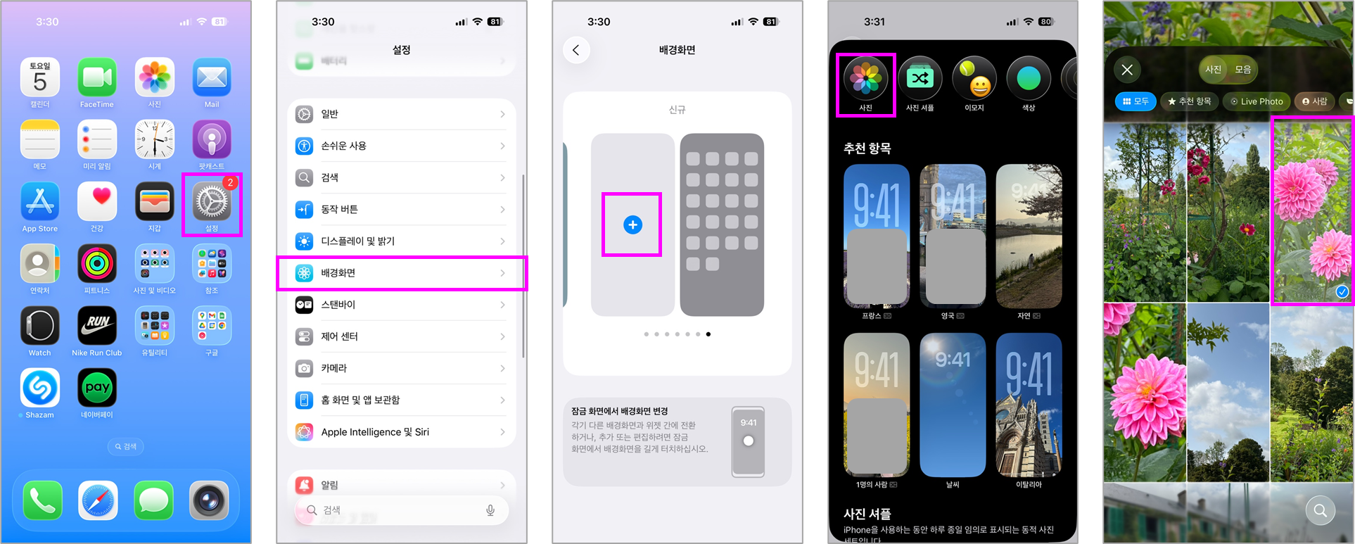 1. 설정 → 배경화면에서 설정하기