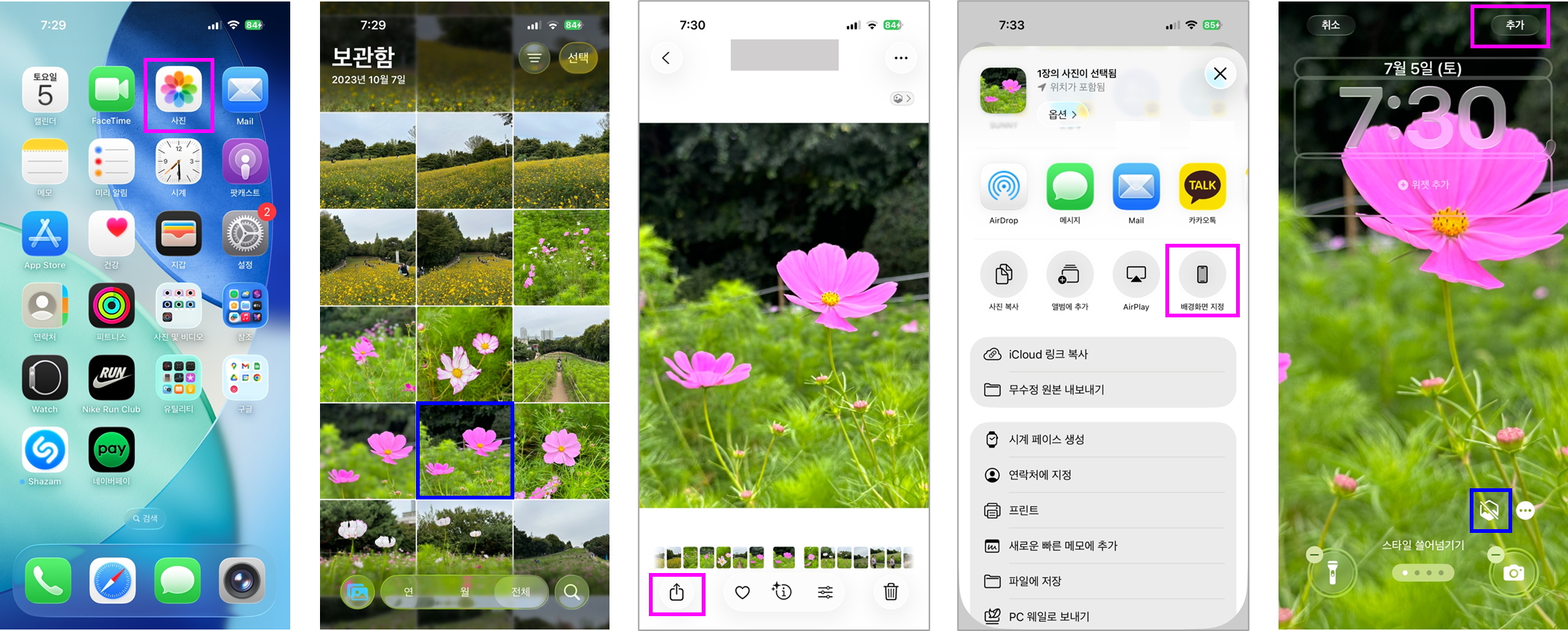 2. 사진 앱 이용하여 배경화면 설정하기