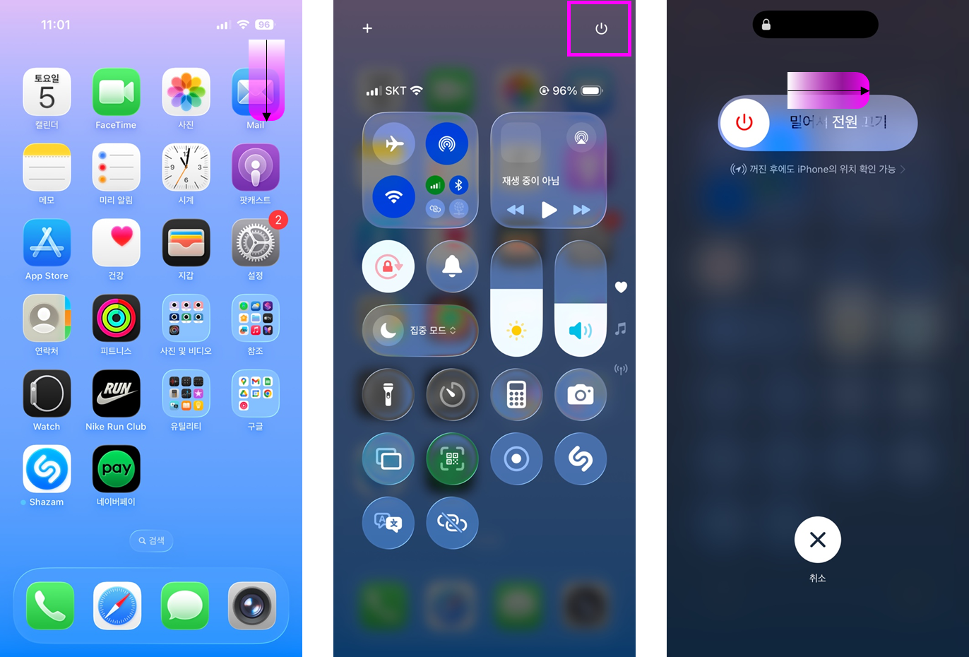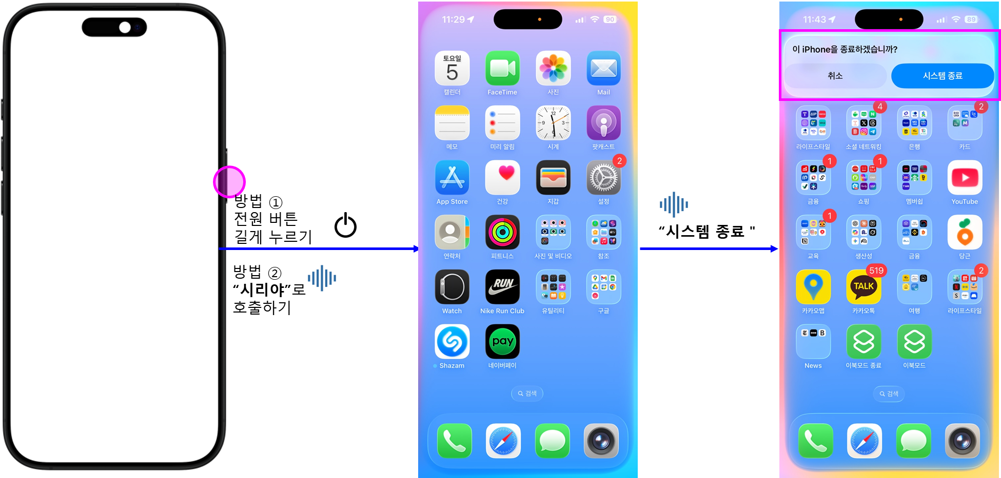 이번 글에서는 아이폰 전원 끄는 5가지 방법과 강제 종료(재시동) 방법을 하나씩 말씀드리겠습니다.
