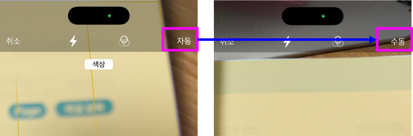 자동 촬영으로 제대로 스캔이 되지 않으면 수동 모드로 바꿔서 직접 촬영이 가능합니다.