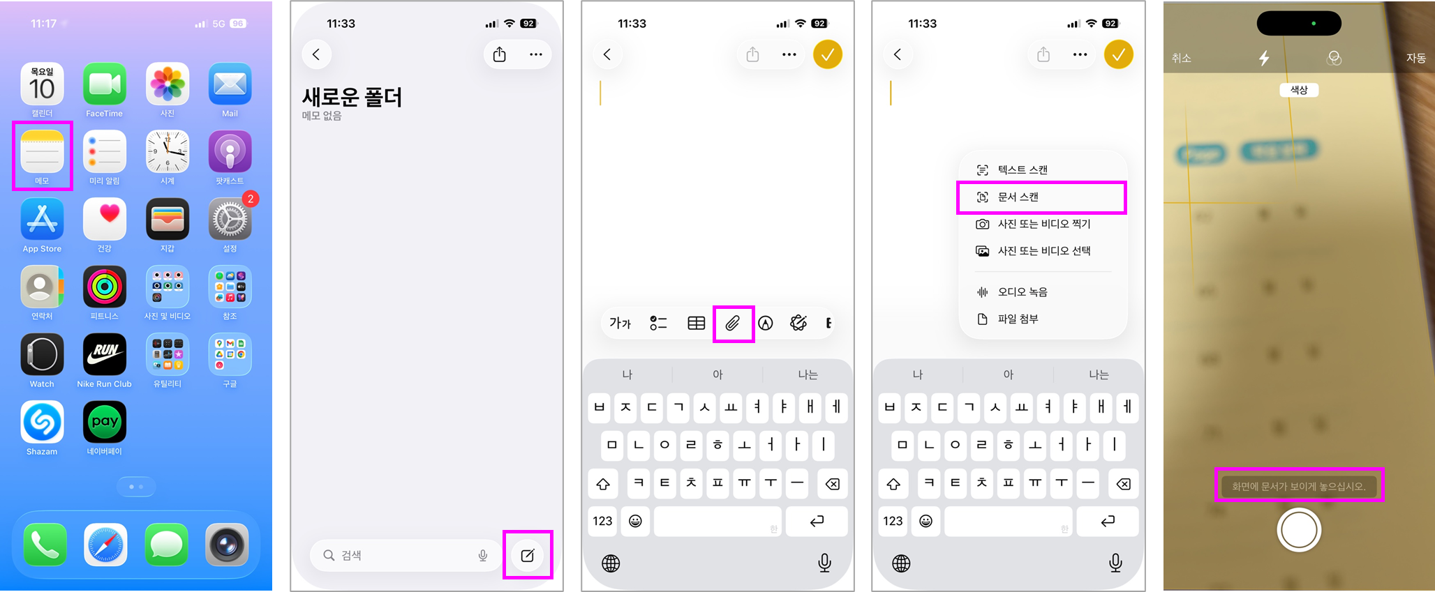 1) 메모 앱에서 스캔하는 방법