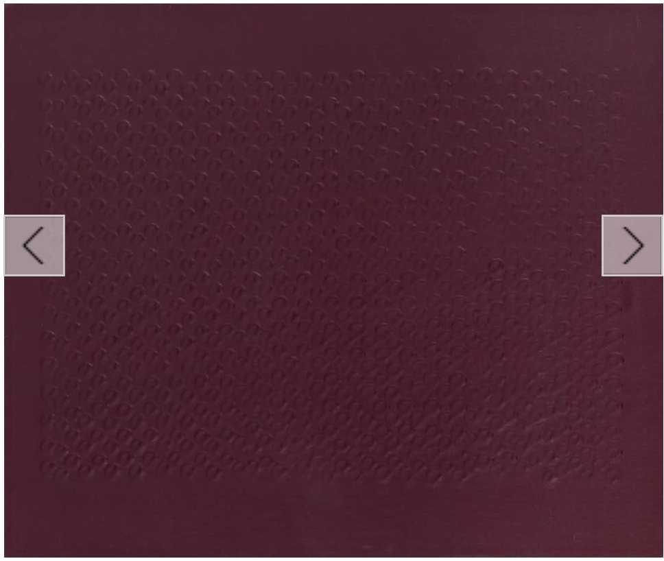 적붉은색의 화면 바탕에 반복적으로 나열된 점으로 이루어진 작품입니다. 김기린 화백은 1세대 단색화가로 초기 작품들은 빨강, 초록, 노랑 등 원색이 강렬한 기하학적 추상을 선보였으며 이후 원색의 화면에 반복적으로 나열된 점으로 이루어진 '안과 밖(Inside, Outside)'시리즈로 내부와 외부의 상호 관계를 인식할 수 있는 '보이지 않는 것(안)과'보이는 것(밖)'에 대한 작업을 보여주었습니다. 서로 상반되지만 떼어놓을 수 없는 것에 대한 생각을 표현하였습니다. (출처 : 아트투게더)