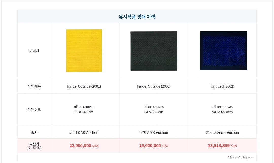 LiveArt에서 같은 작품의 추정 가격이 있어 공유해 봅니다.