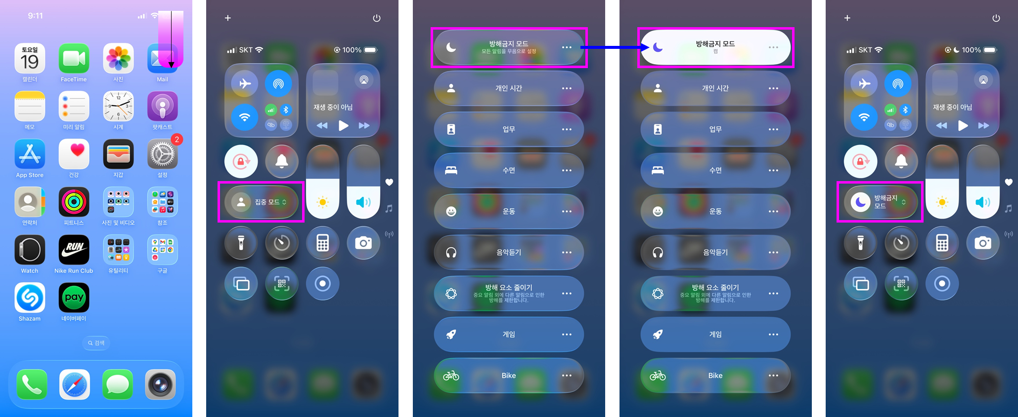 - 녹화 중 알림 차단: 방해금지 모드(제어 센터 → 집중 모드 → 방해금지 모드)를 잠깐 켜두면 불필요한 알림이 녹화에 방해되지 않아요.