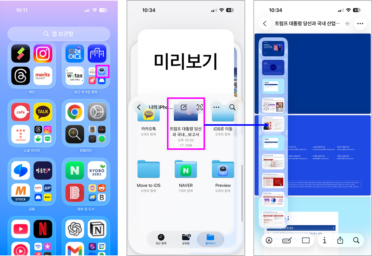 메일, 카카오톡, 사파리 등에서 다운로드 받은 PDF를 바로 '파일' 앱에서 열 수 있습니다.