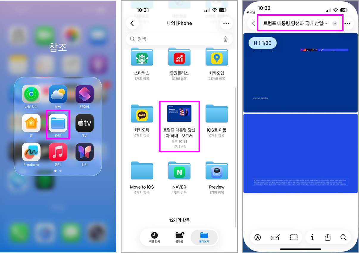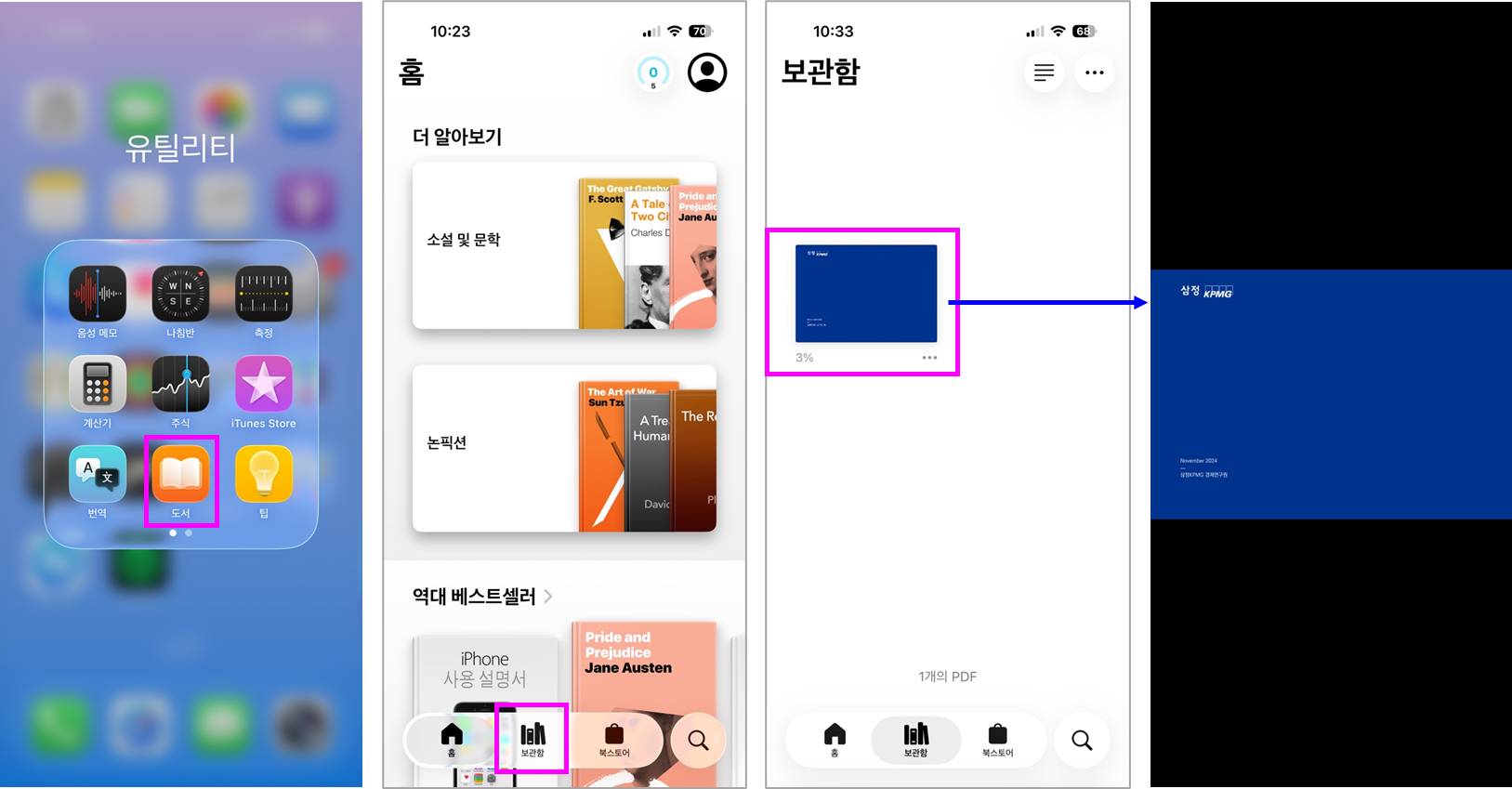 - 파일 앱, 도서 앱과 같은 PDF 관련 앱을 열어 PDF 파일을 확인해봅니다.