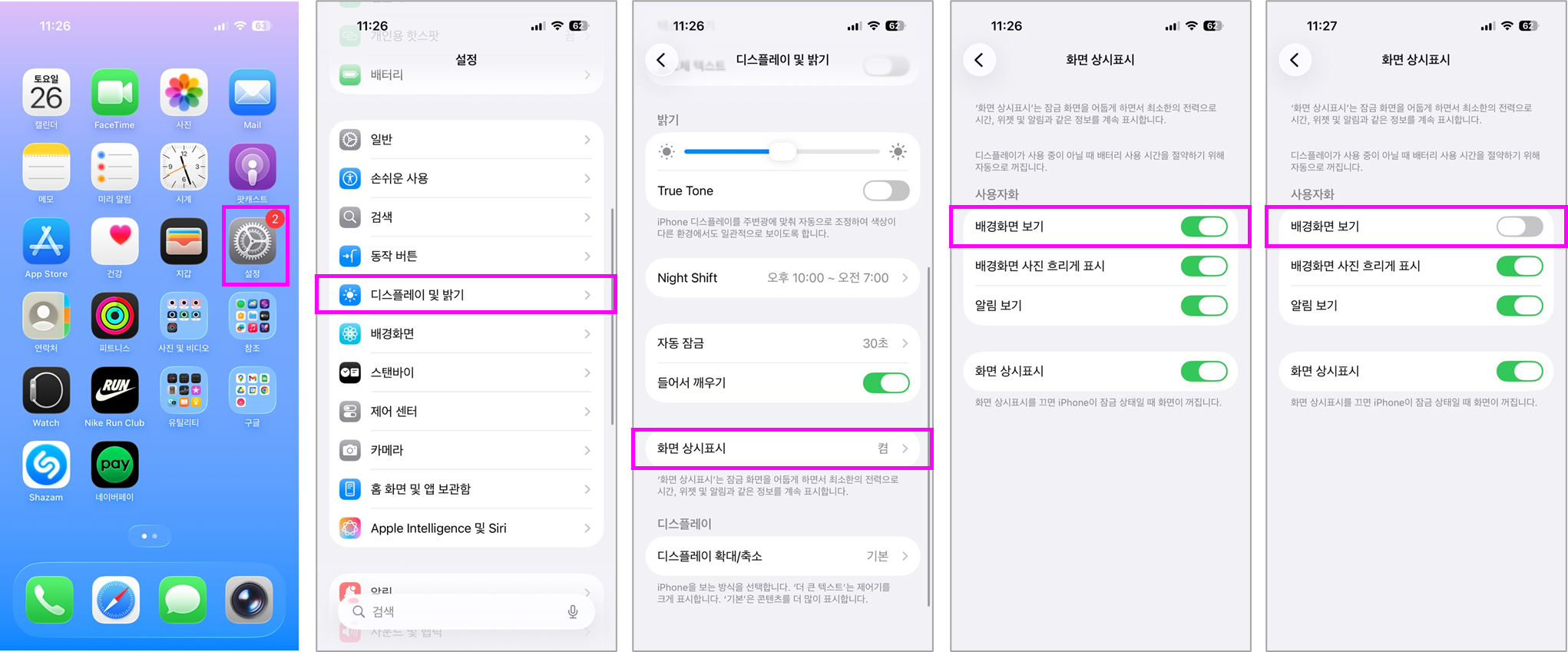 1. AOD 기본 설정 및 켜고 끄는 방법