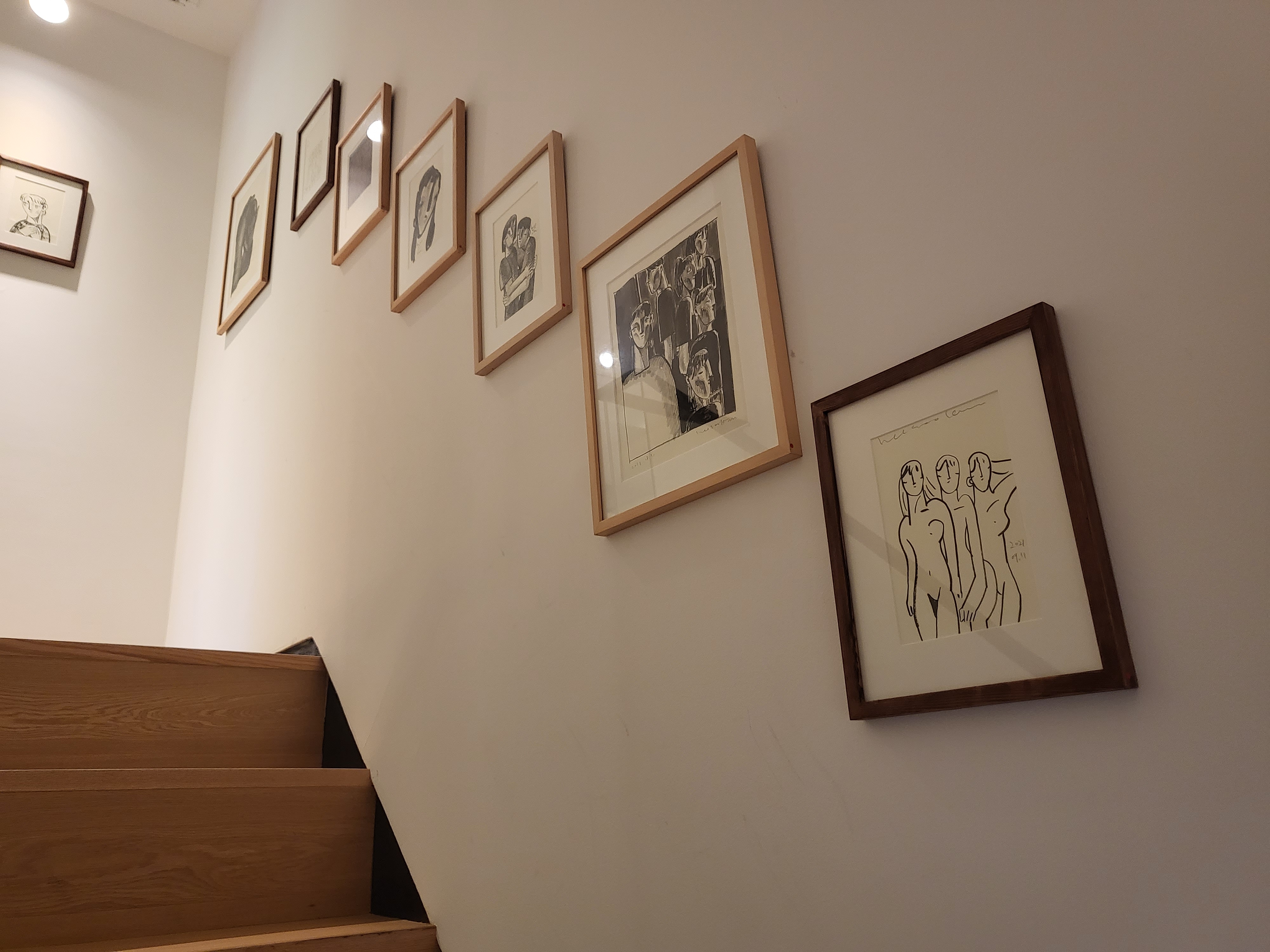 계단을 타고 올라가는 중간 곳곳에 작품들이 전시되어 있습니다.