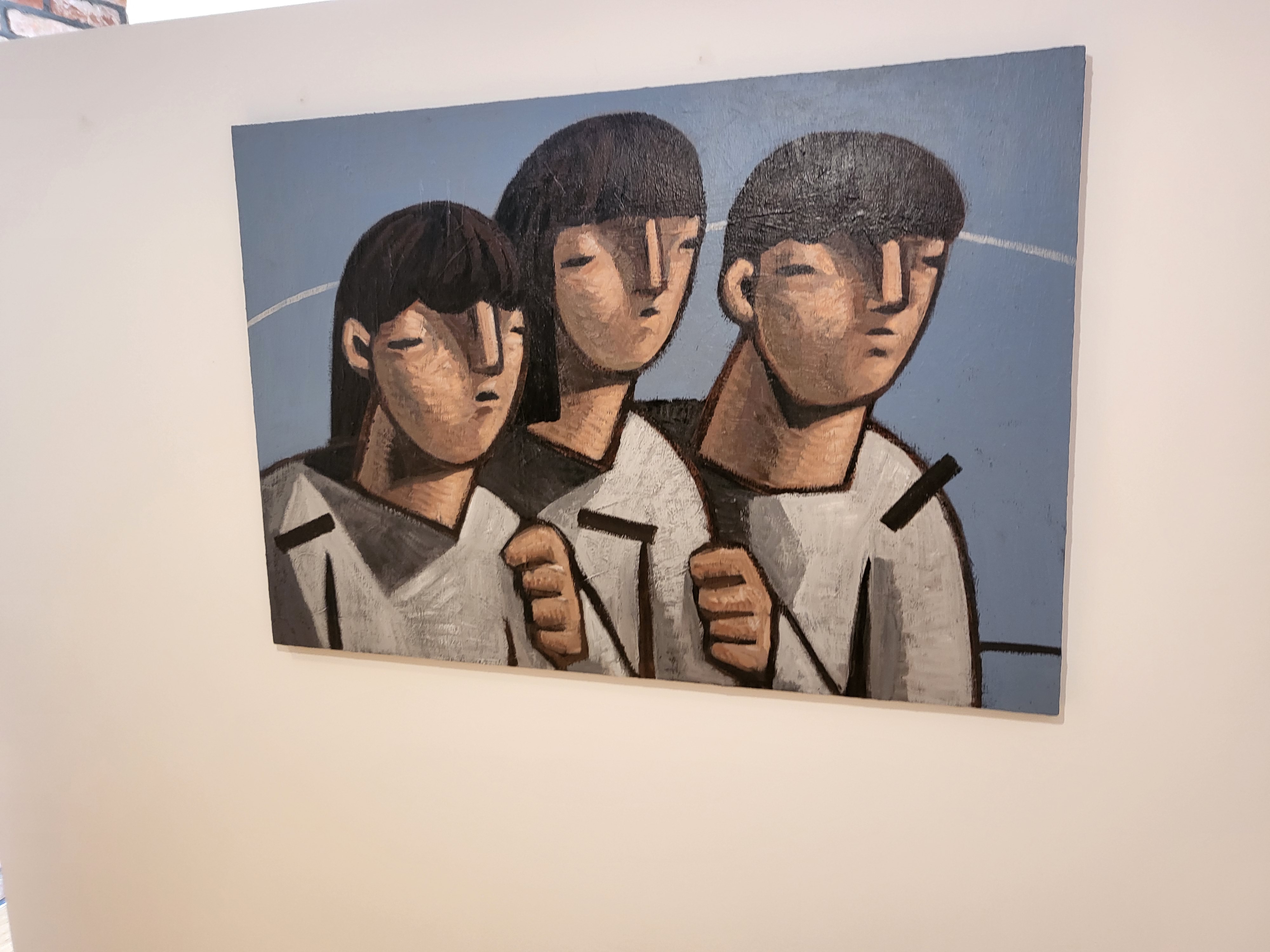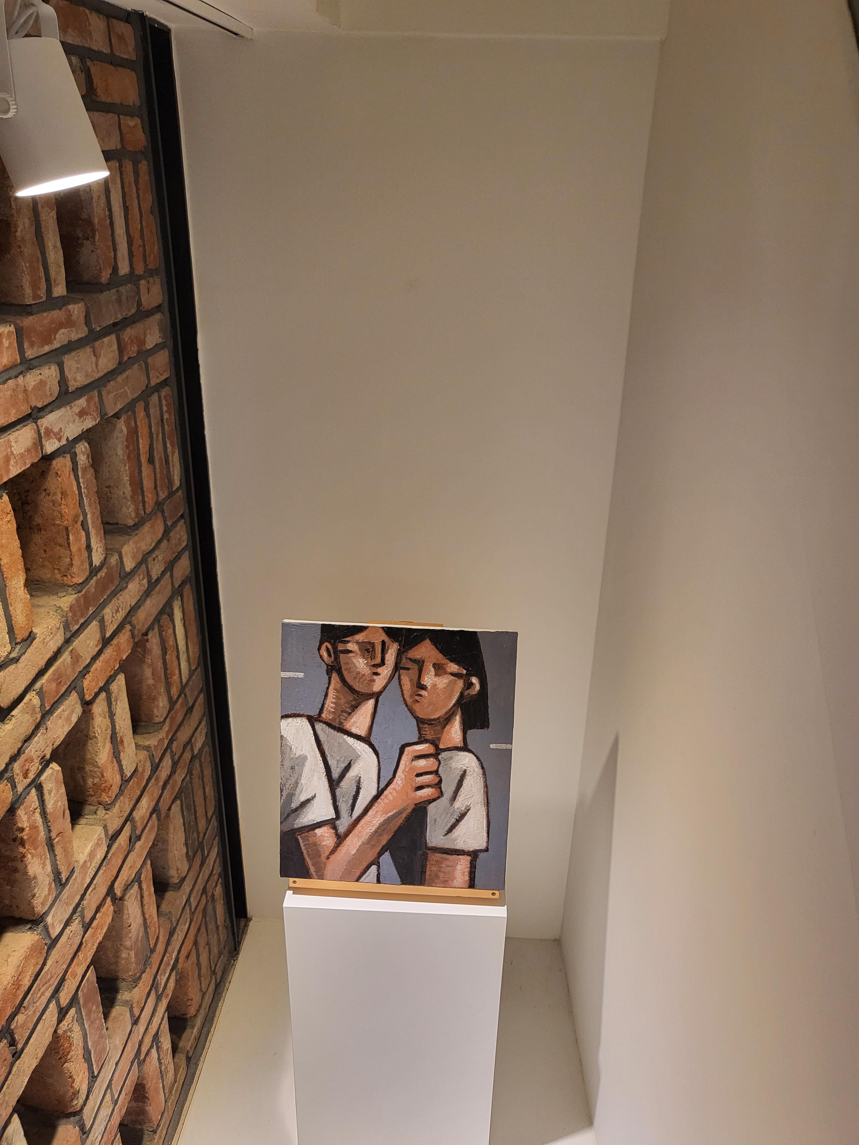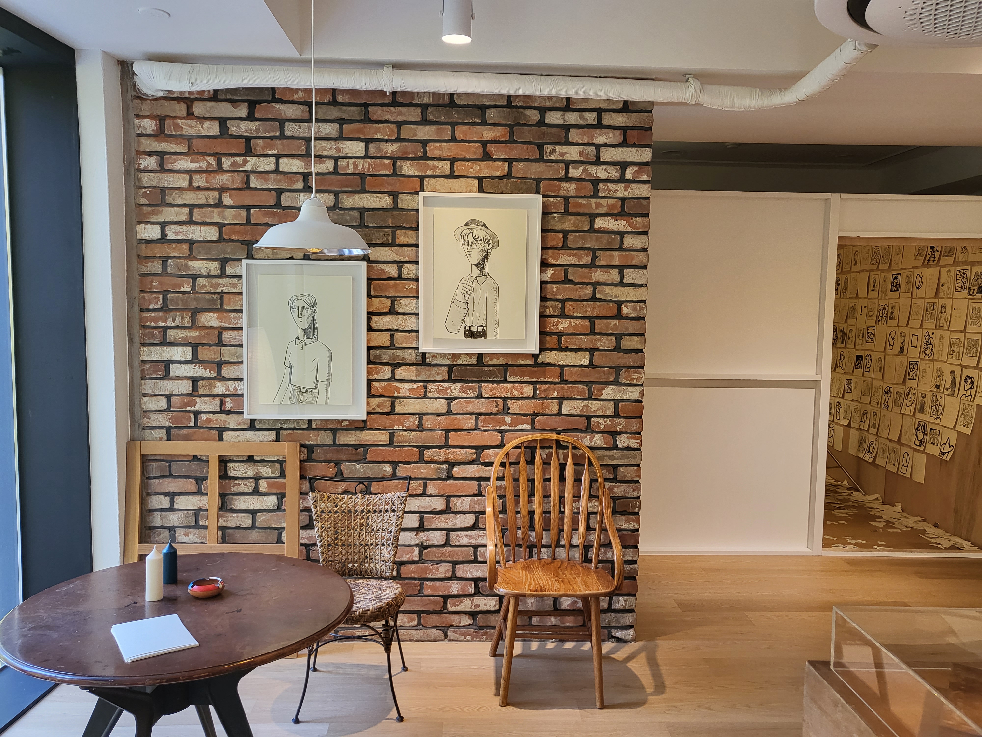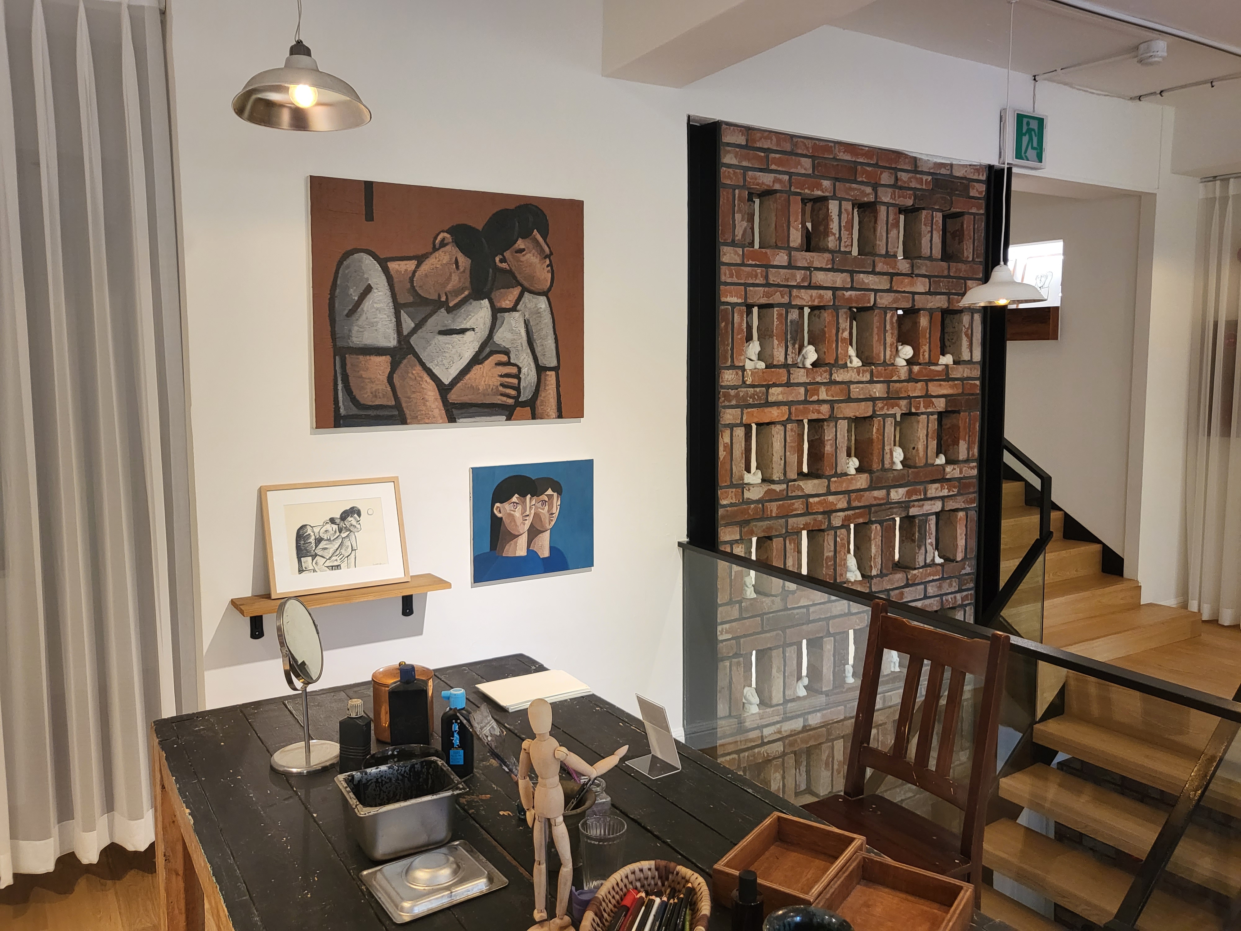 걸려 있는 작품이 벽돌로된 벽과 참 잘 어울리는 것 같습니다.
