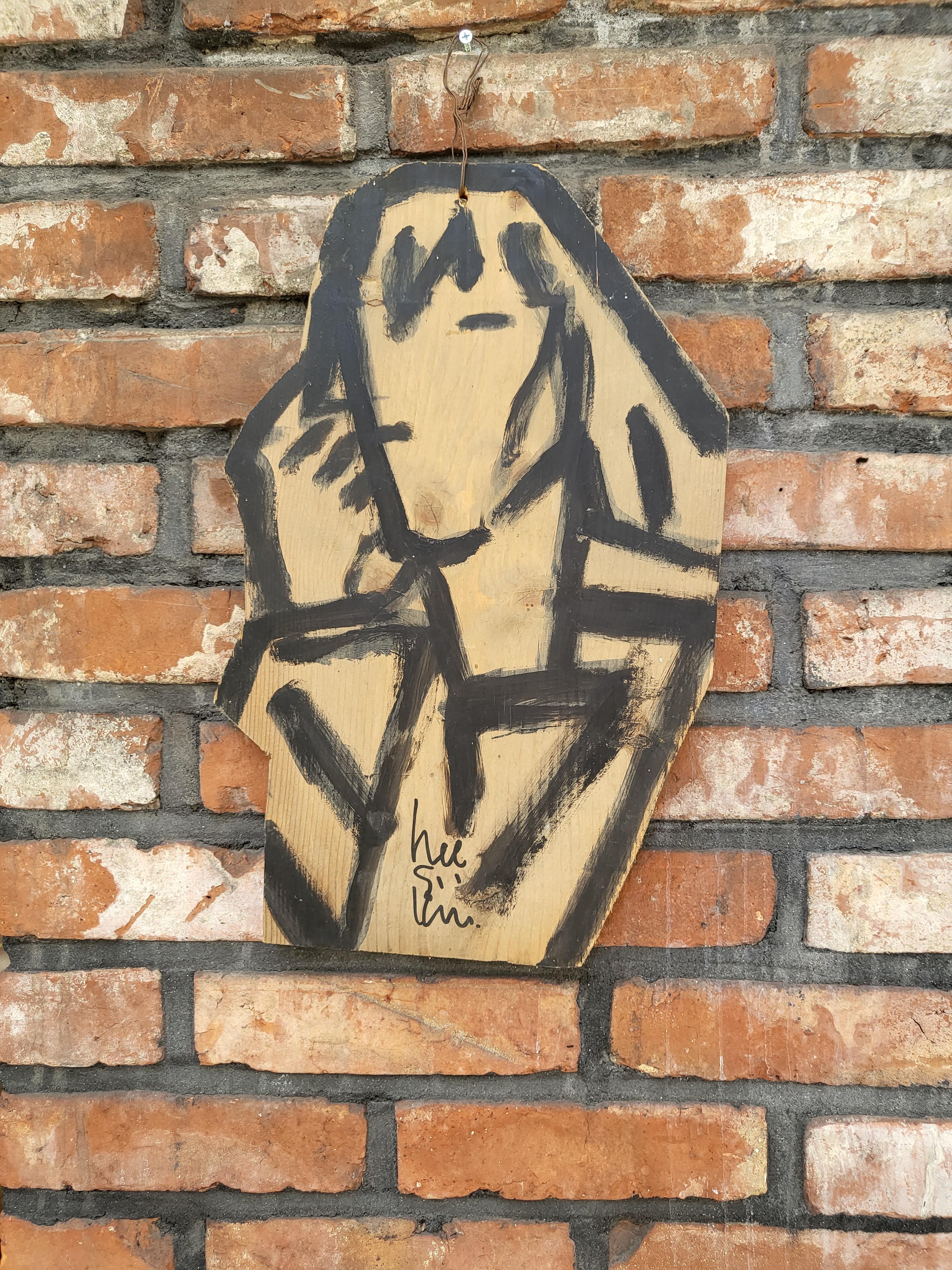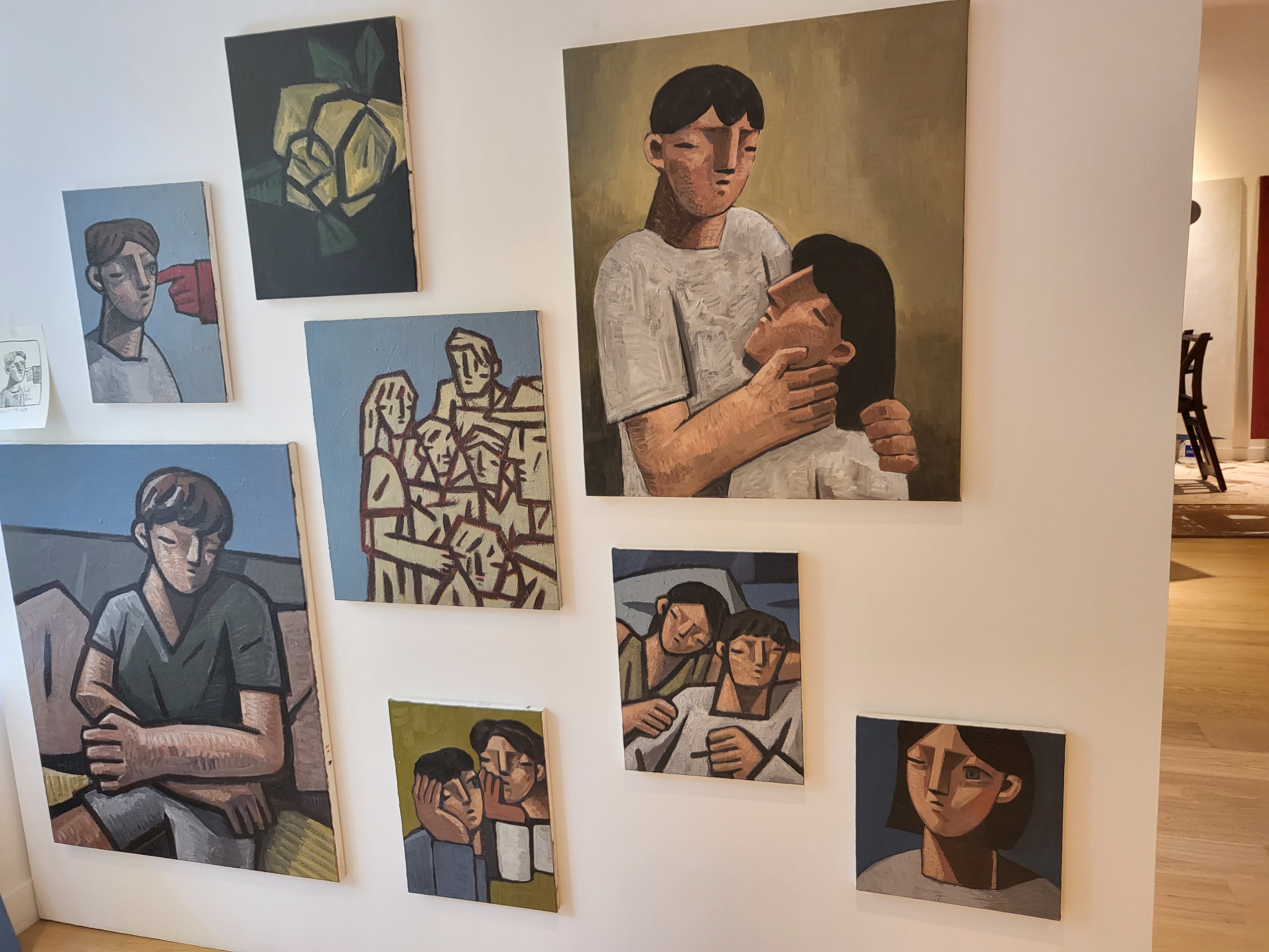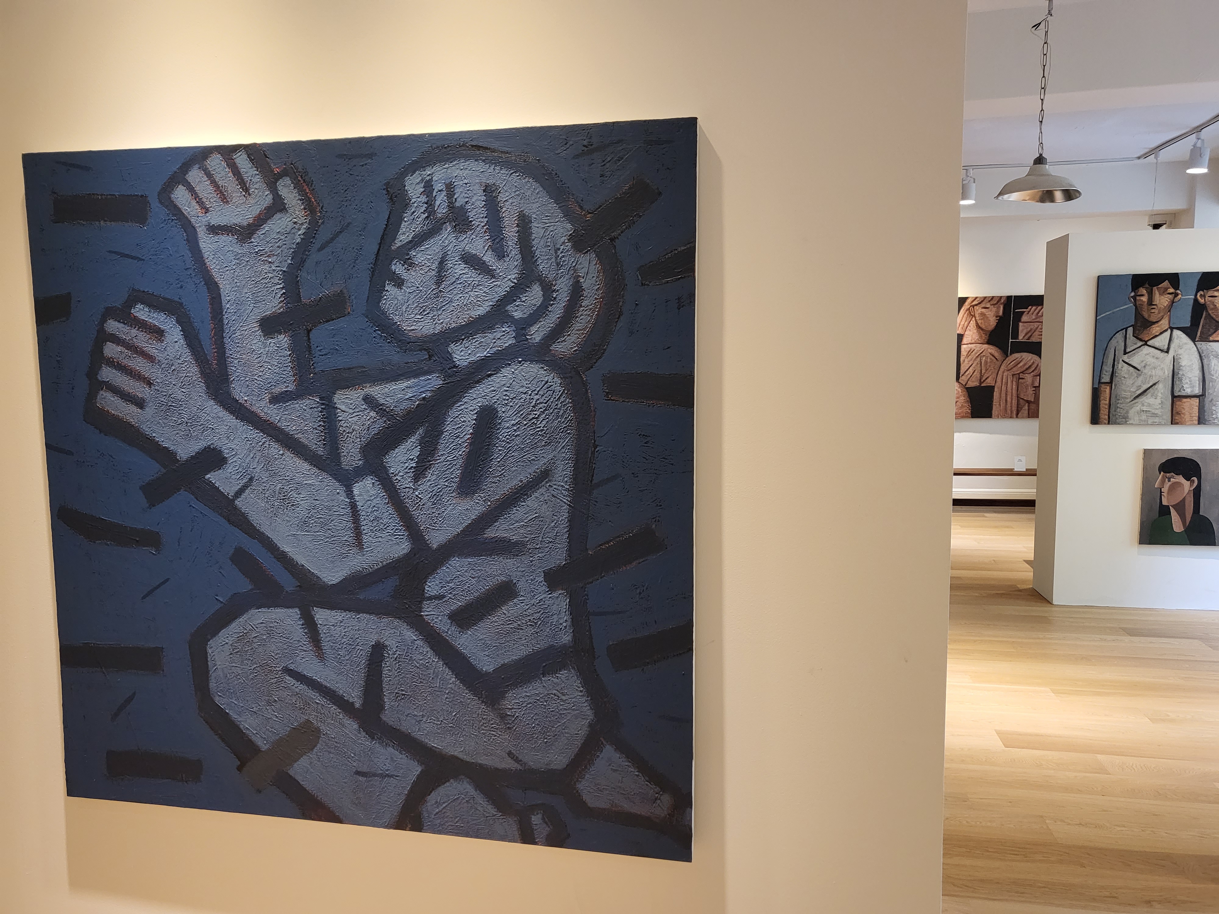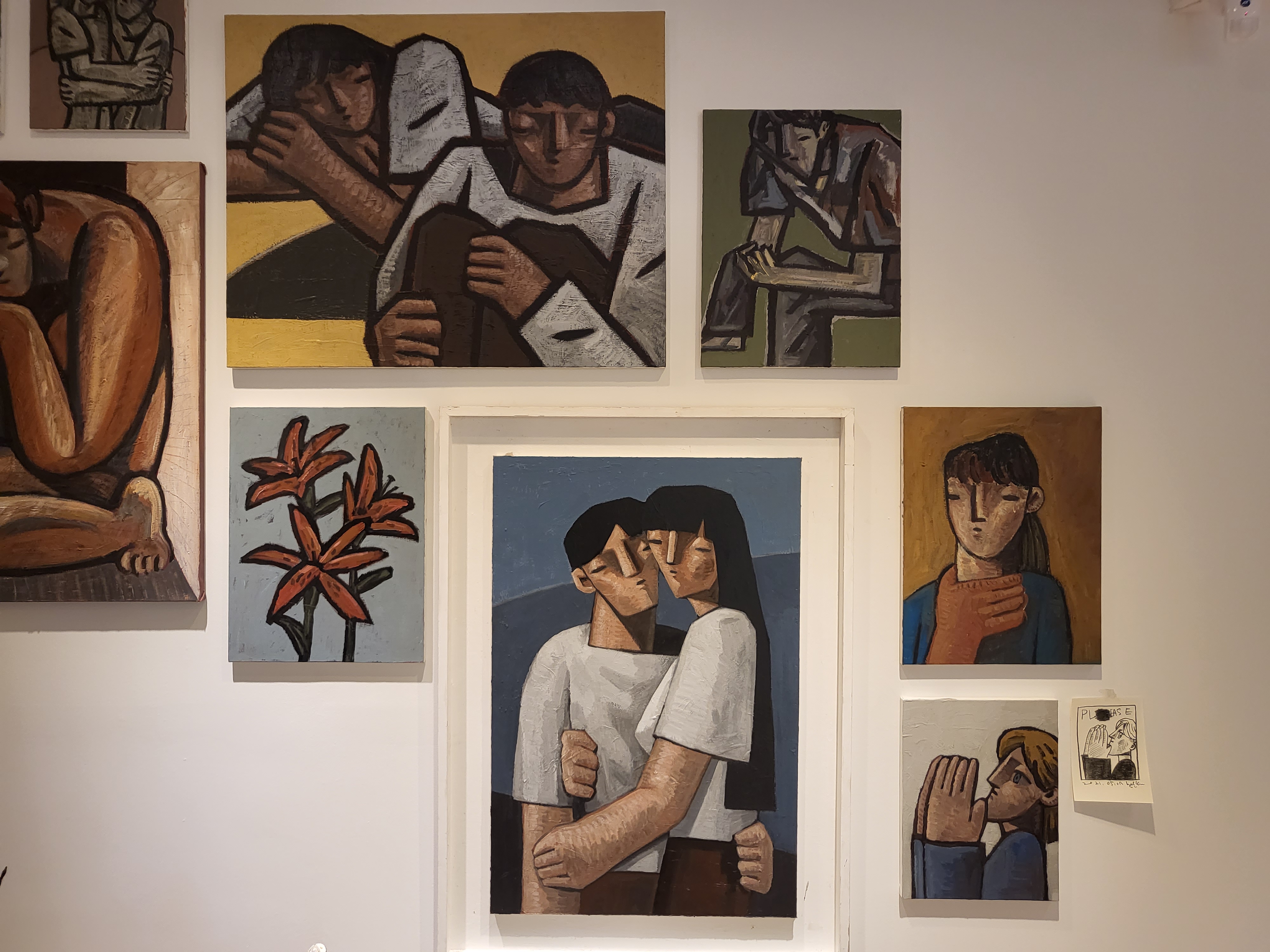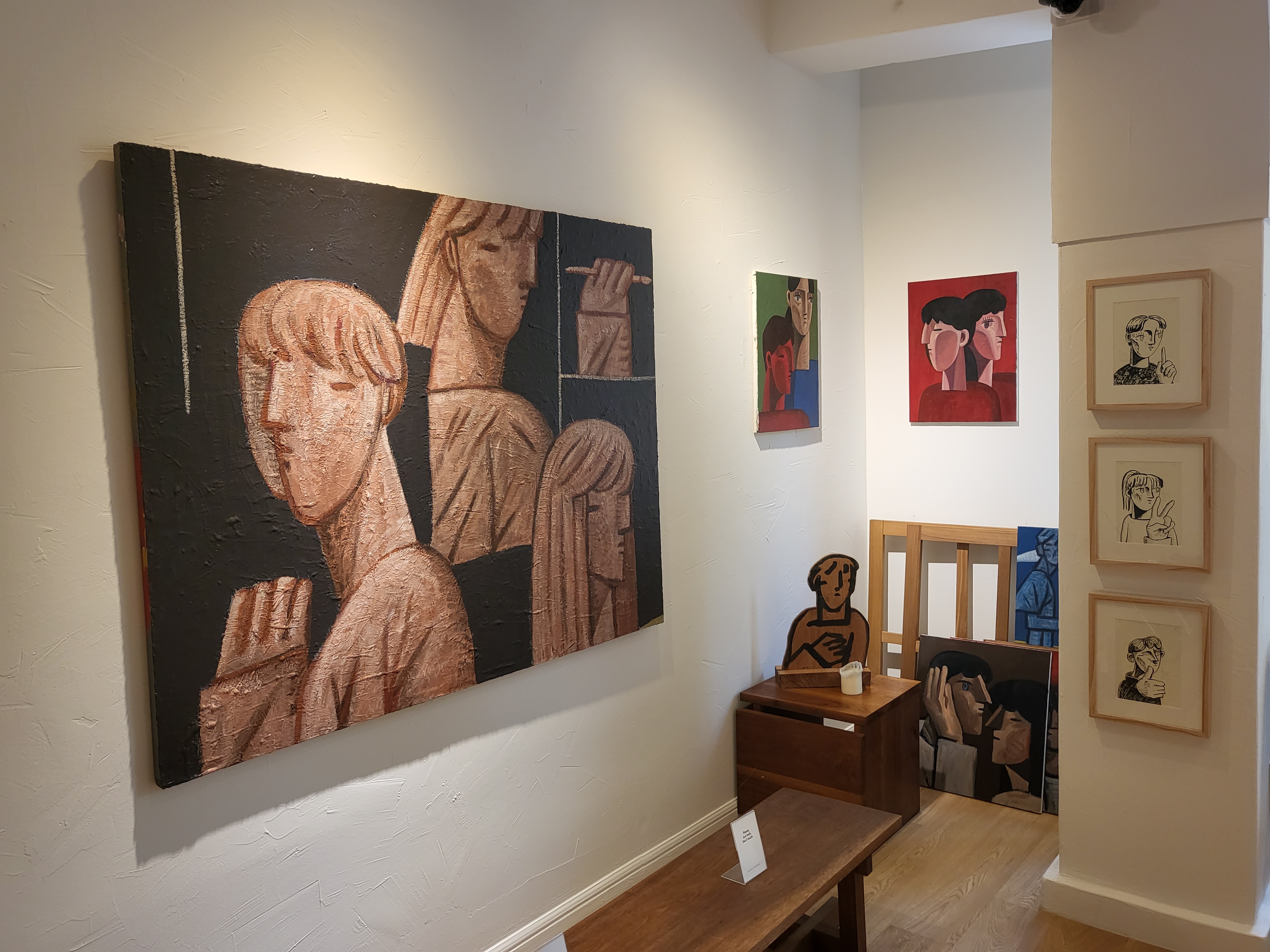 걸려 있는 작품이 벽돌로된 벽과 참 잘 어울리는 것 같습니다.