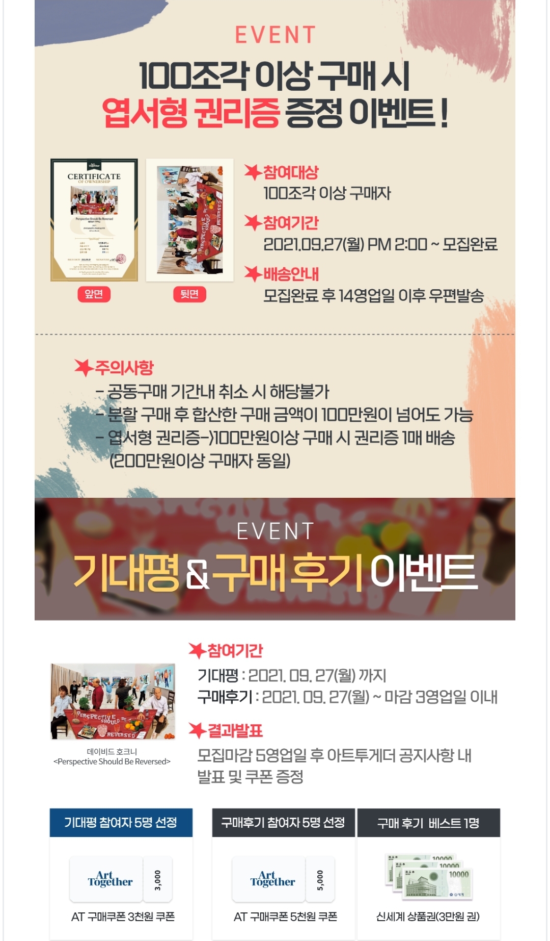 아트투게더에서 100조각 이상 구매시 엽서형 권리증를 주는 이벤트가 있습니다.