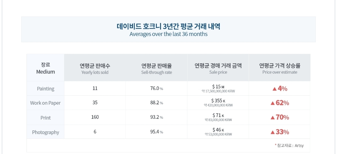 1) 호크니 작품의 높은 거래량 및 가격 상승률