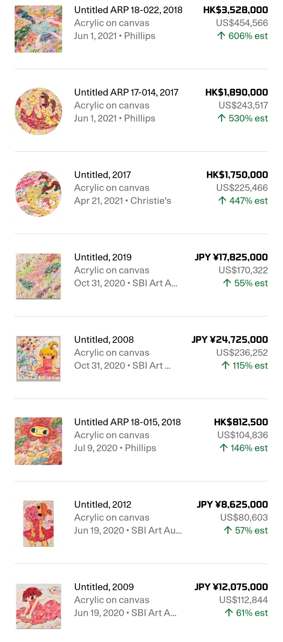 - 페인팅 작품은 27점 판매되었고, 94.3% 거래되었으며, 추정가 대비 152% 높은 가격에 거래 되었습니다.