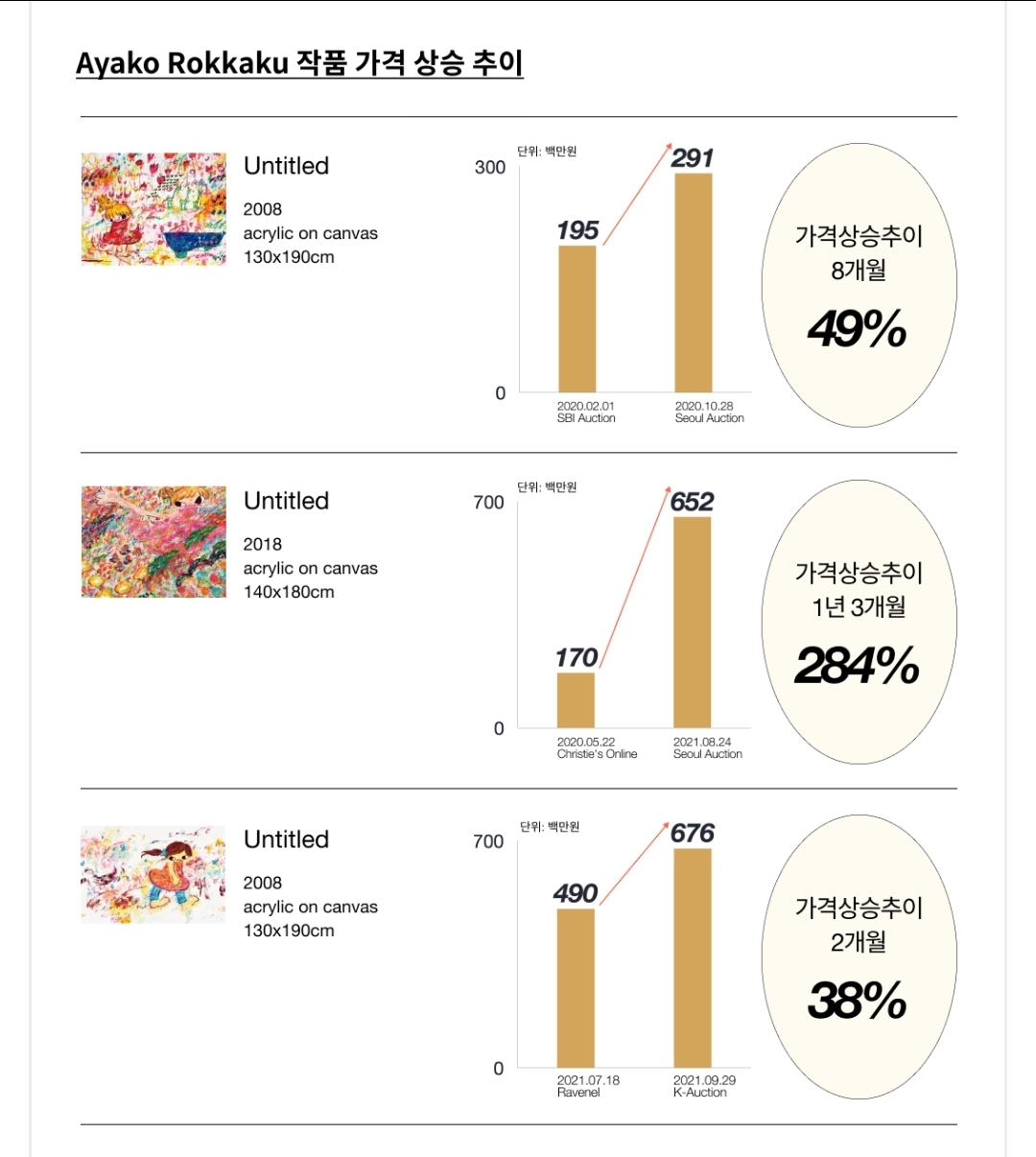 ① 높은 가격 상승 추이, ② 지난 글로벌 경매 시장에서의 93.5%의 높은 낙찰률 , ③ 2021년 10월까지 97%의 낙찰률, ④ 80% 이상의 추정가 상회율