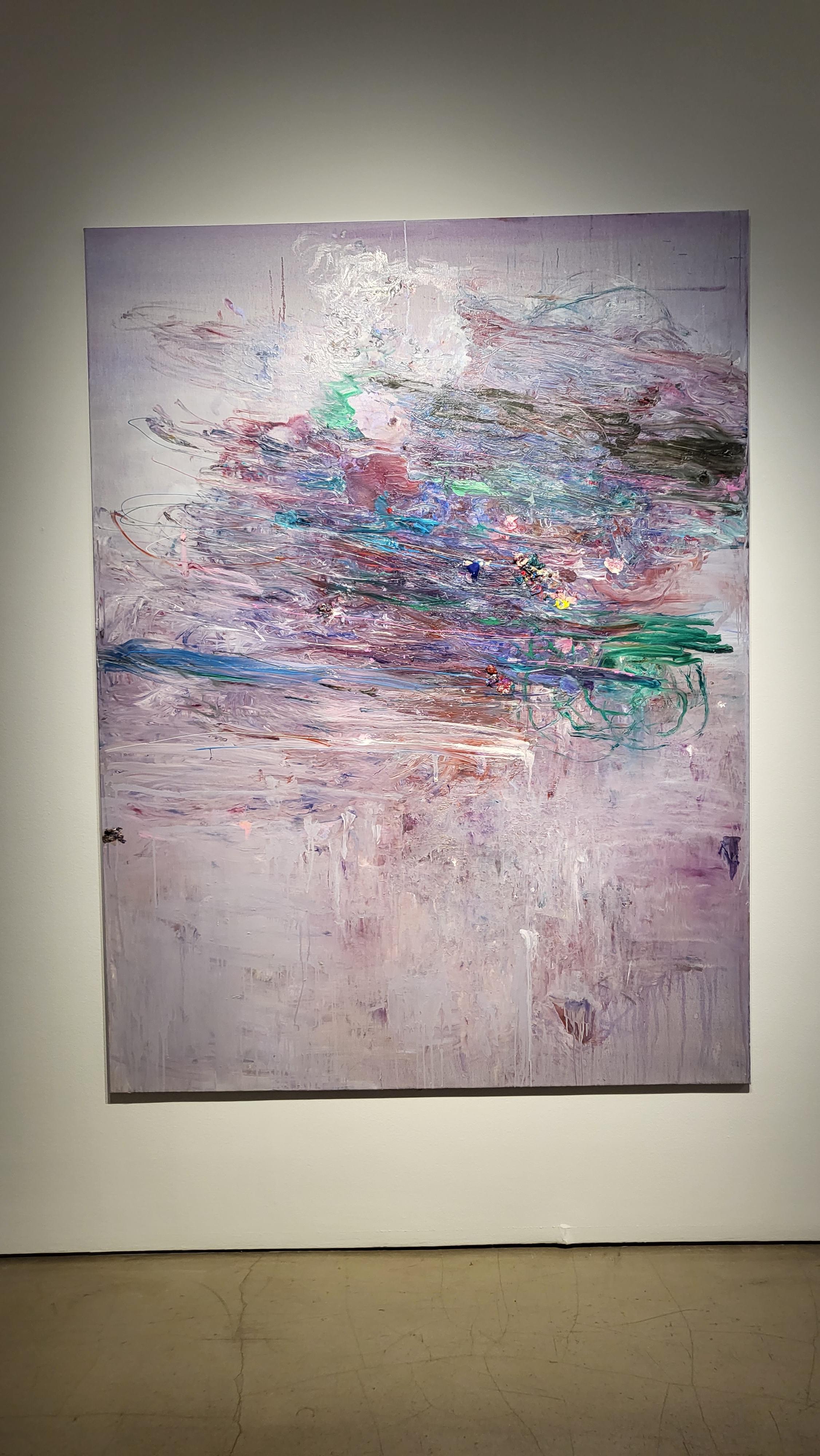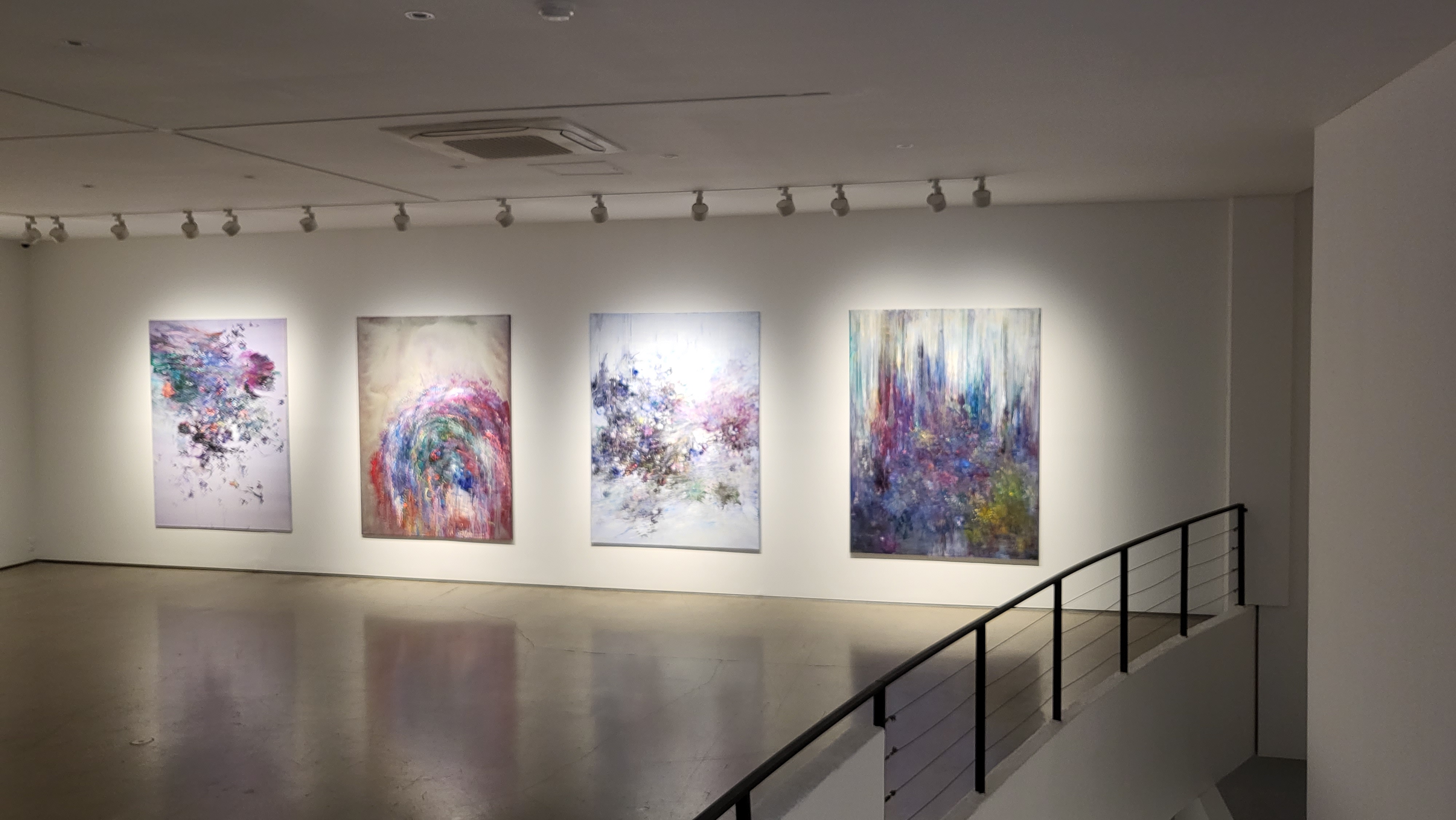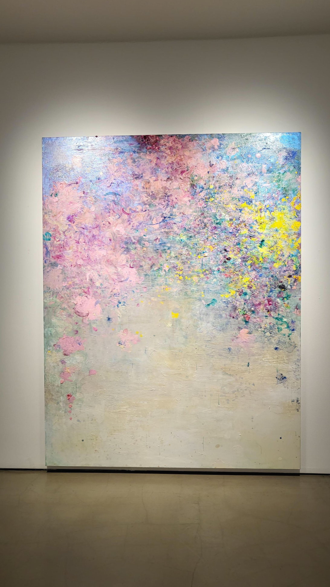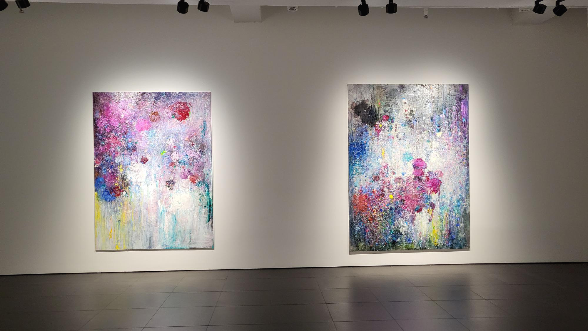 QR체크인을 한후 바로 보였던 1층 전시장의 모습인데 커다란 캔버스에 꽃비가 내리는 듯한 작품이 눈에 들어옵니다.