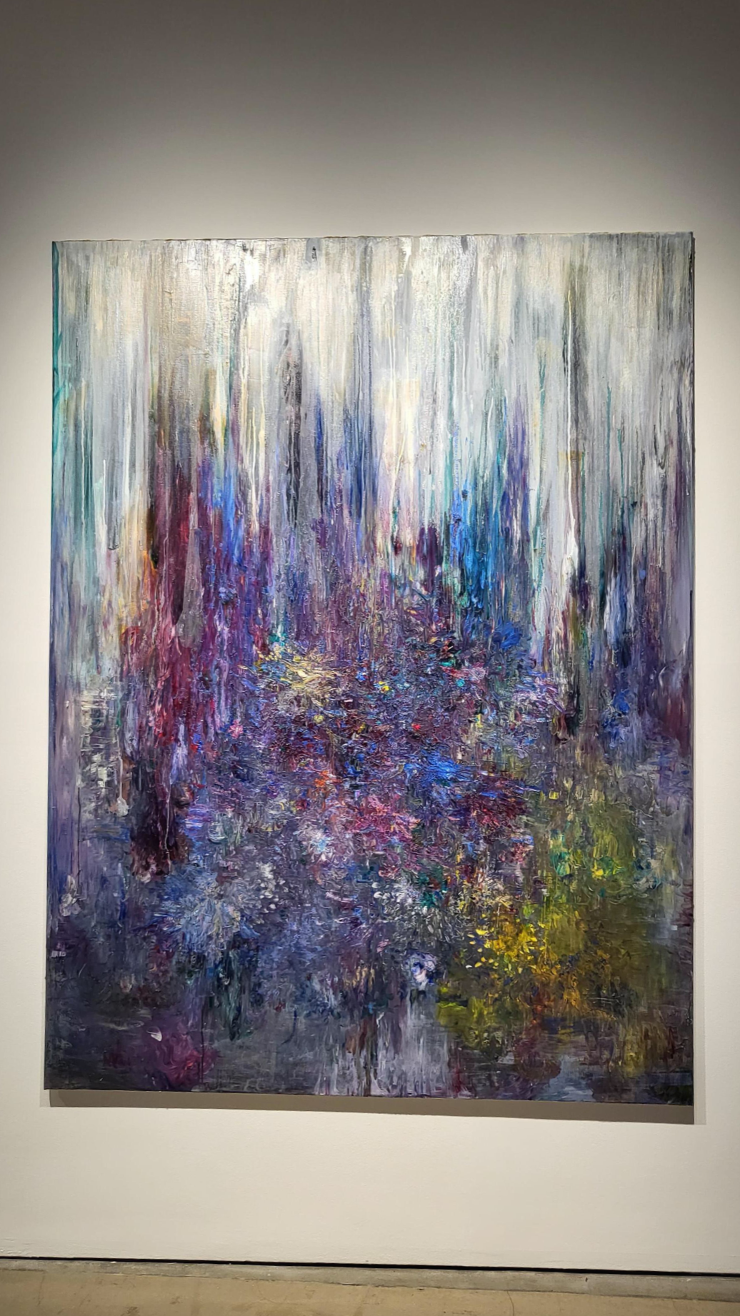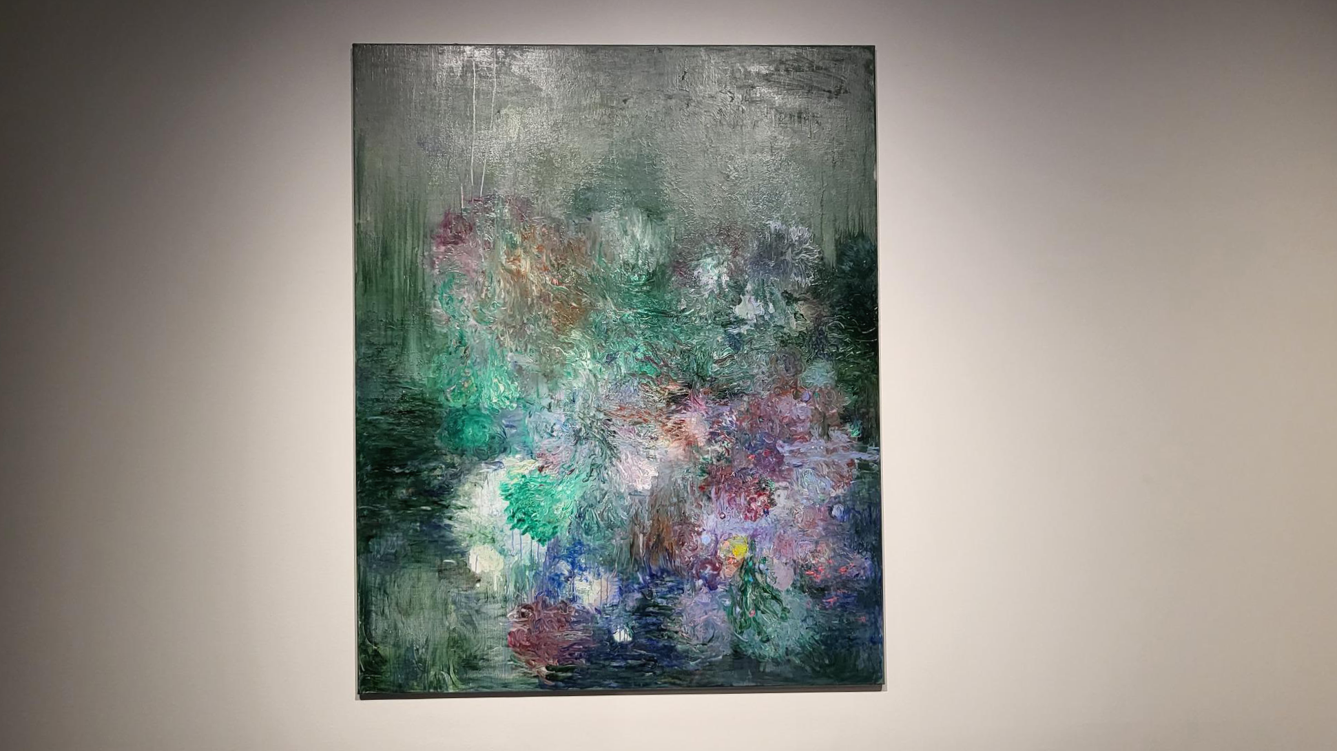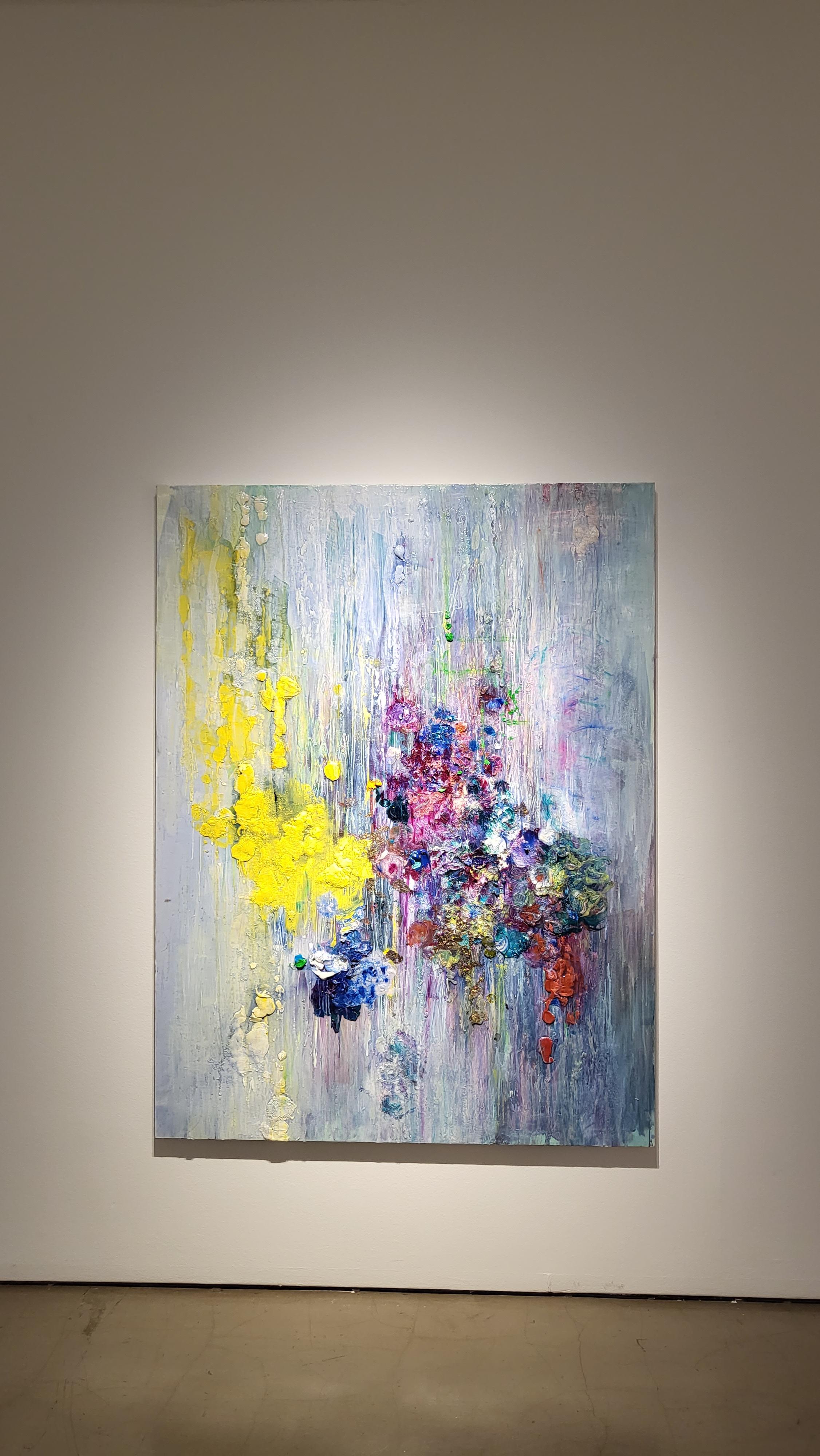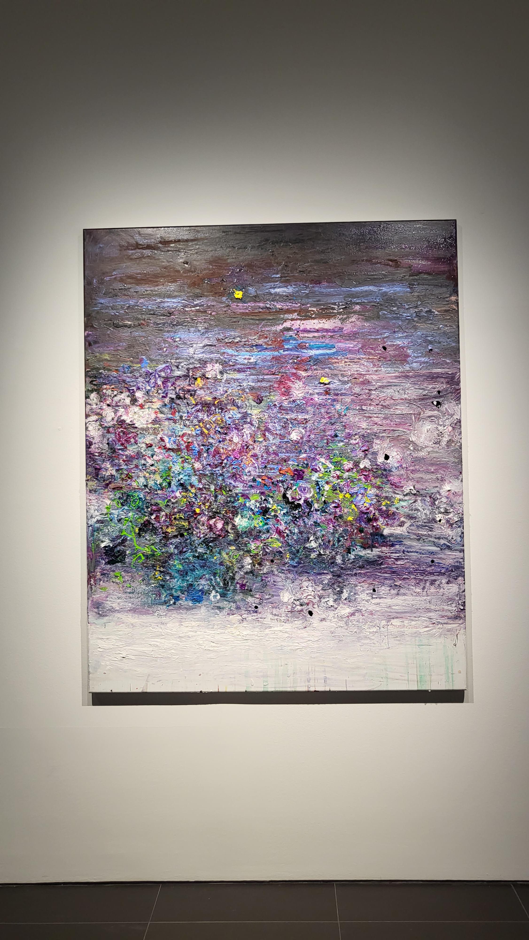QR체크인을 한후 바로 보였던 1층 전시장의 모습인데 커다란 캔버스에 꽃비가 내리는 듯한 작품이 눈에 들어옵니다.